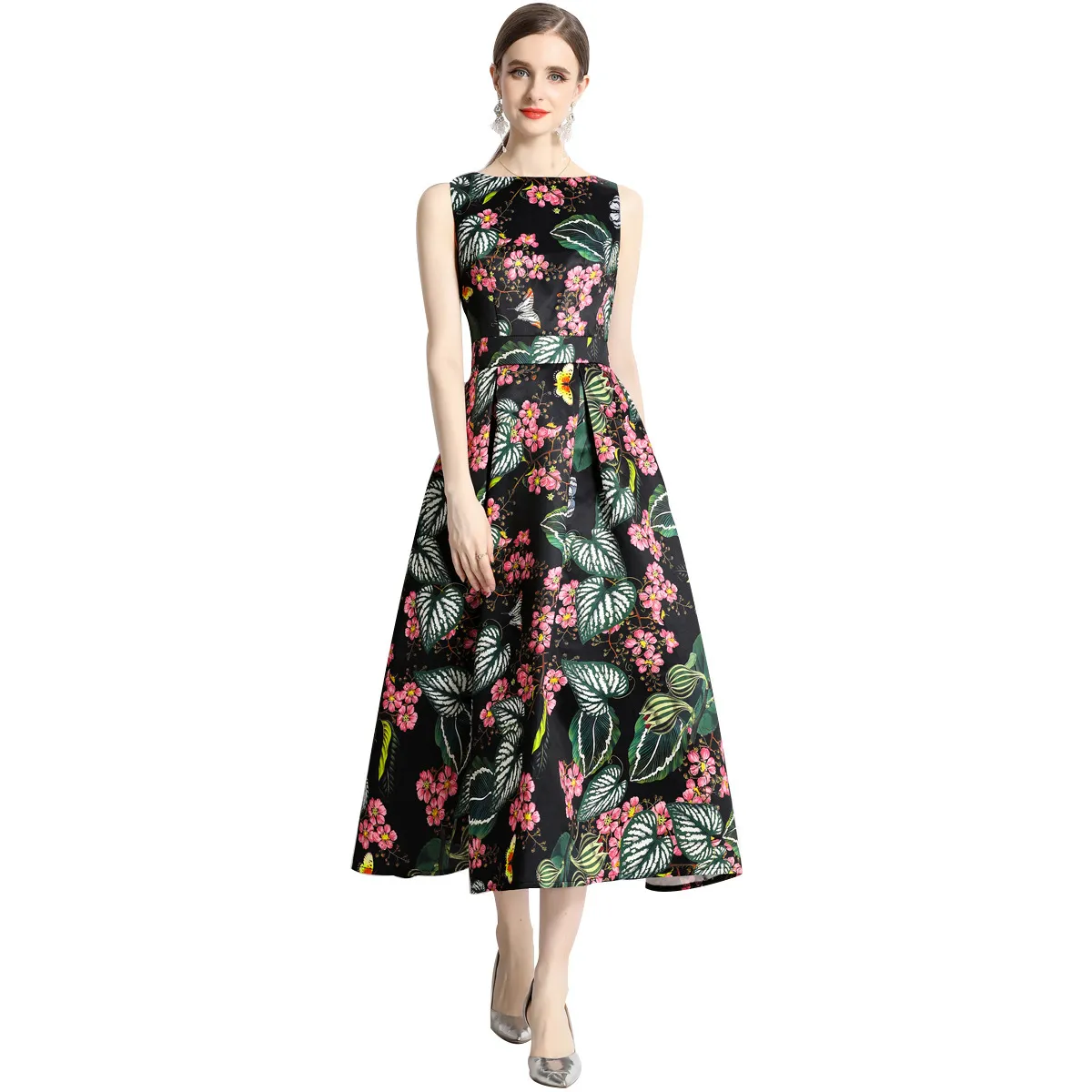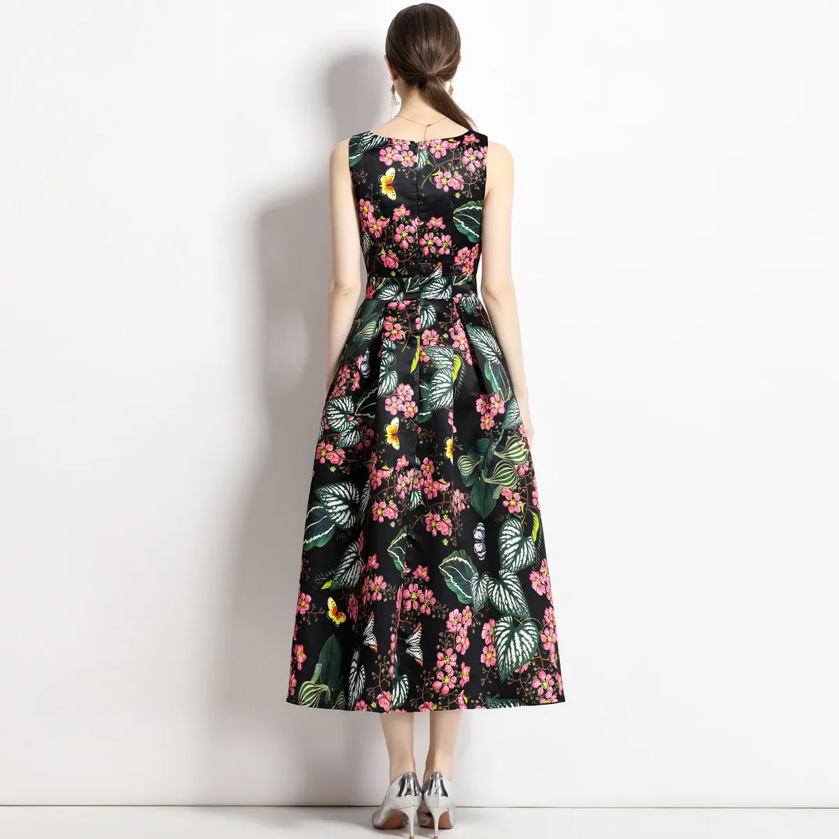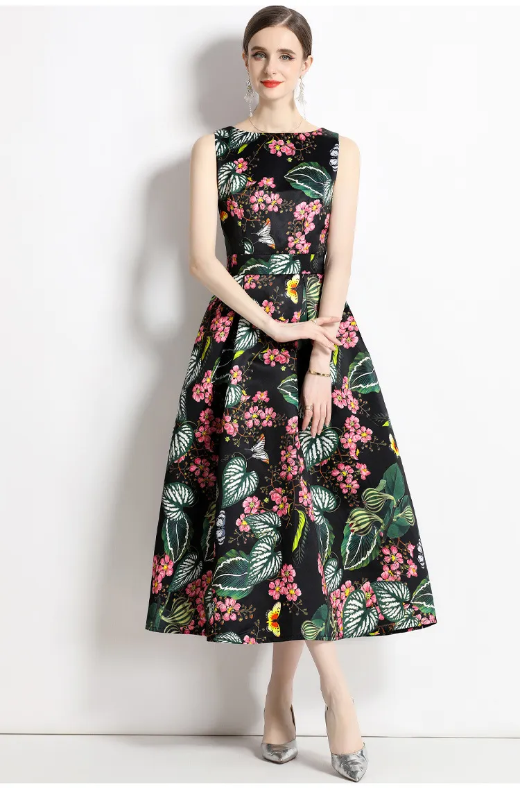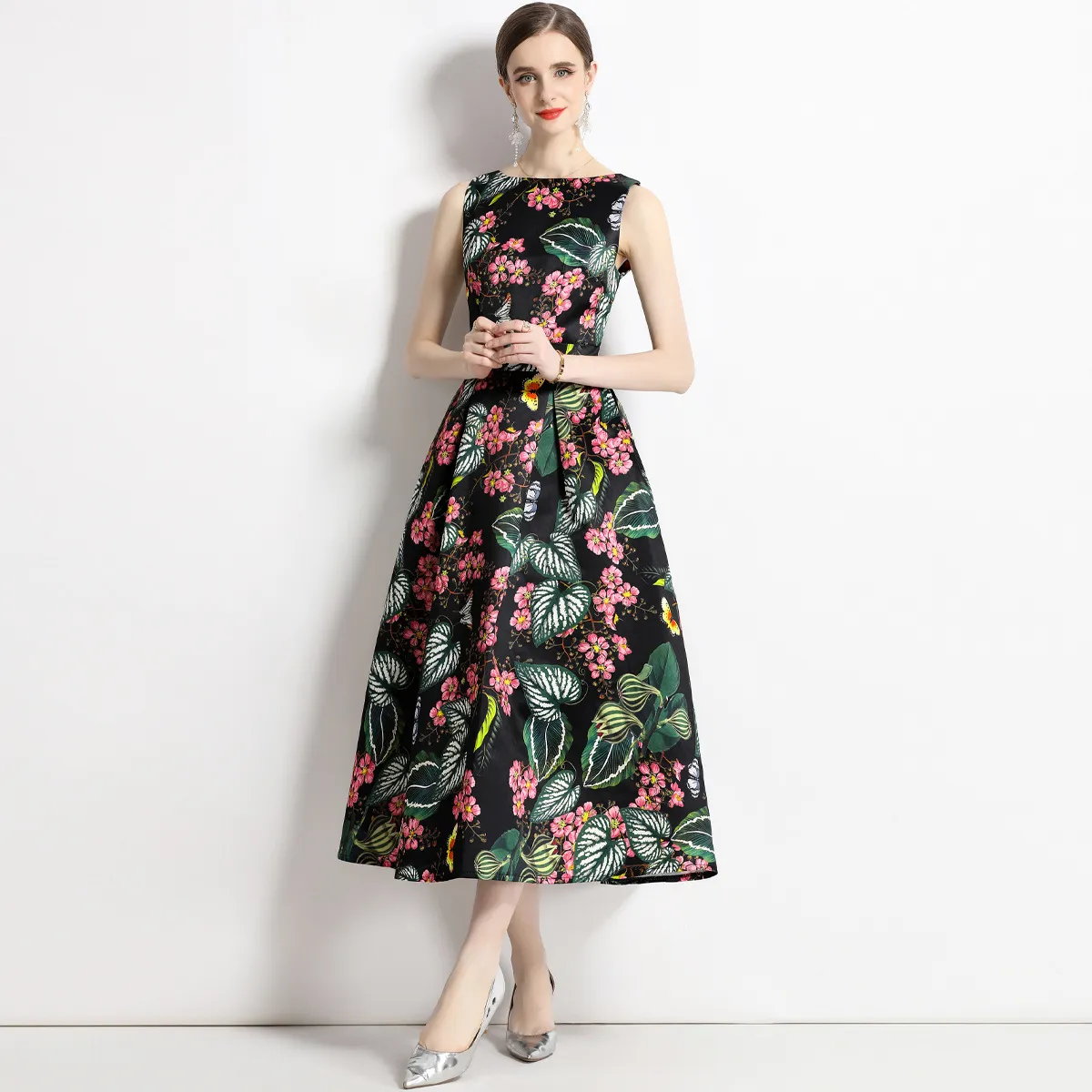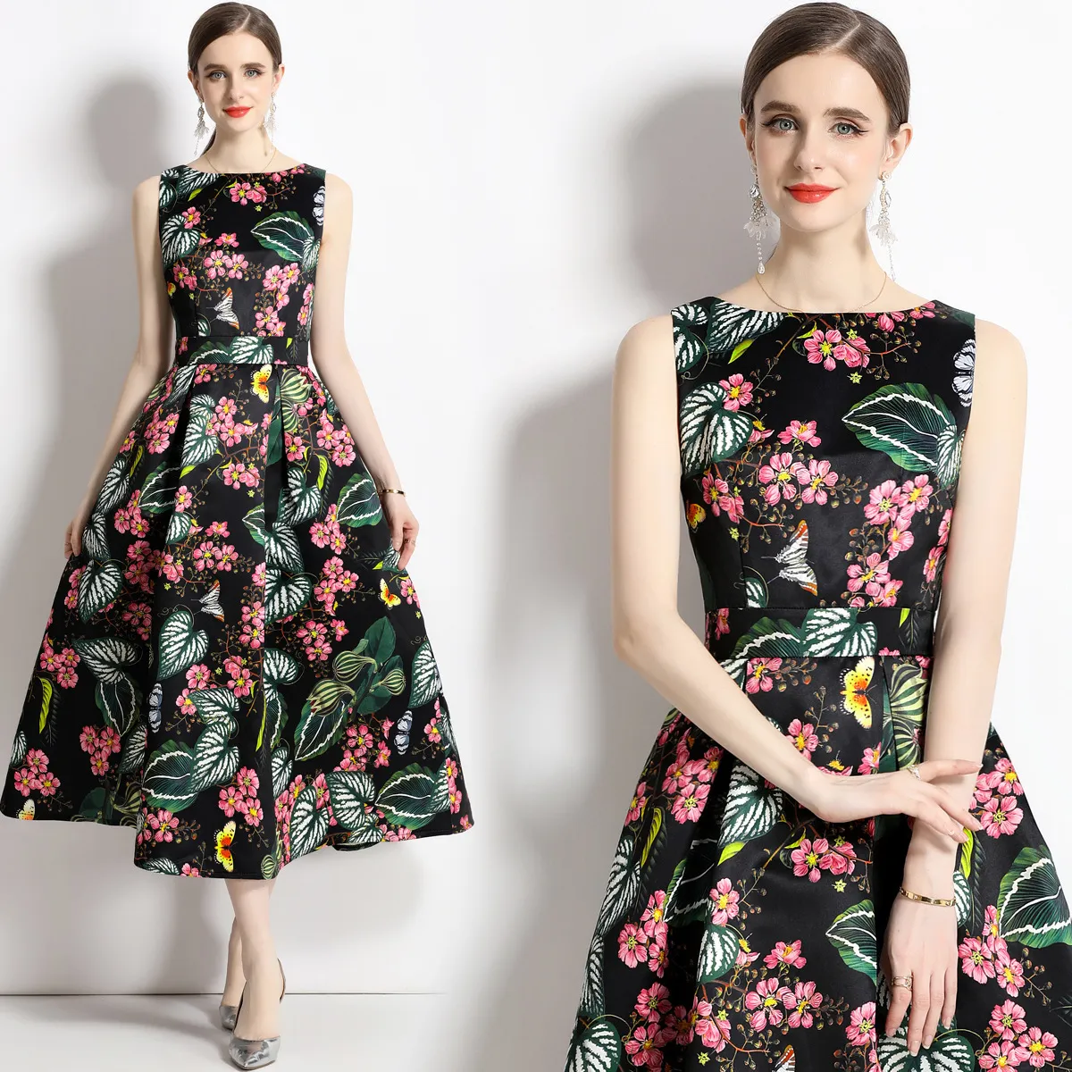 衣都精品- 2023新款復古印花無袖高腰連衣裙