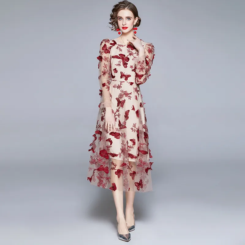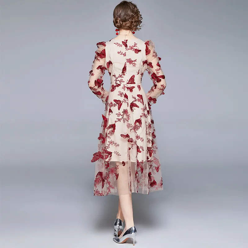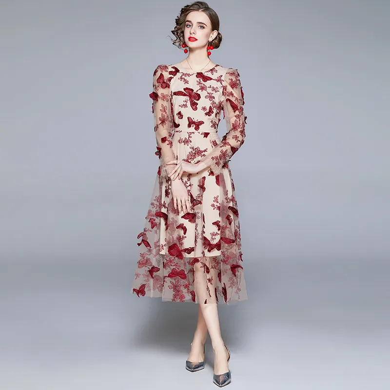 衣都精品- 2023新款氣質圓領立體蝴蝶刺繡連衣裙