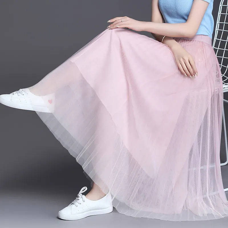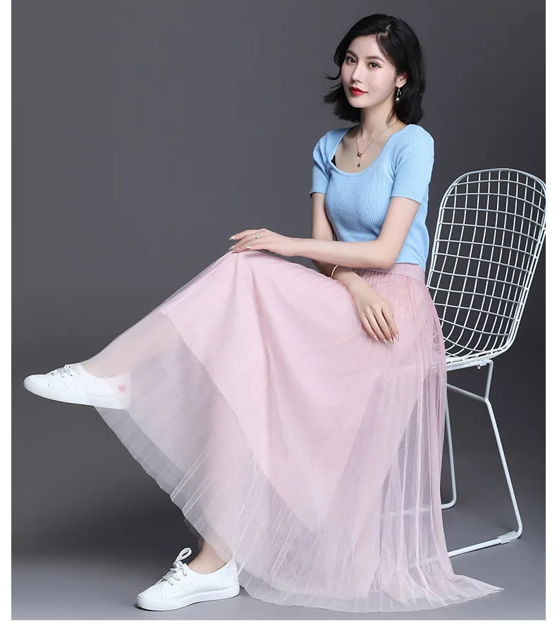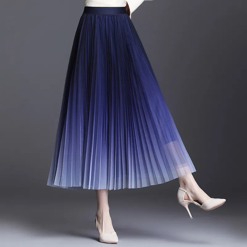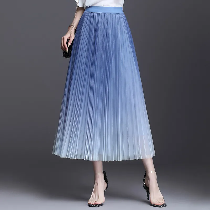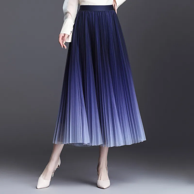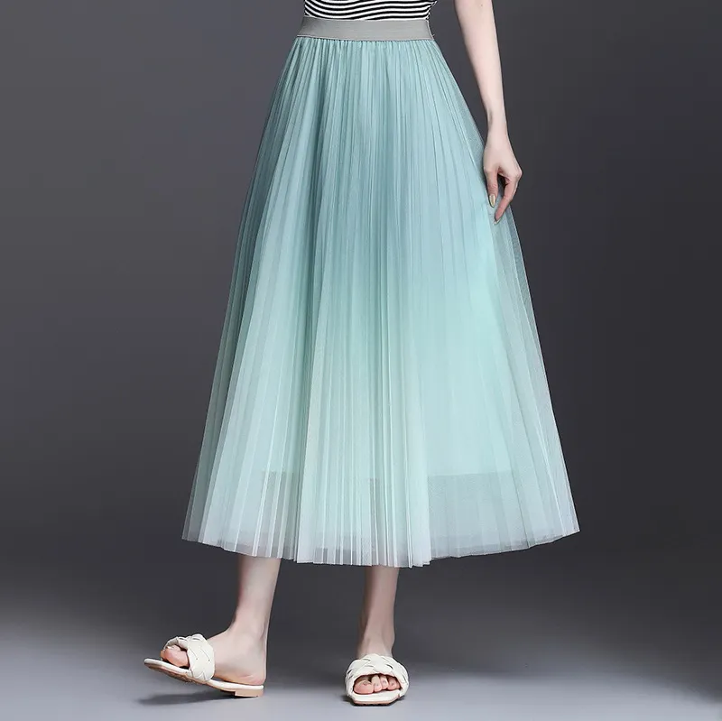 衣都精品- 2023新款韓版高腰顯瘦漸變網紗半身裙