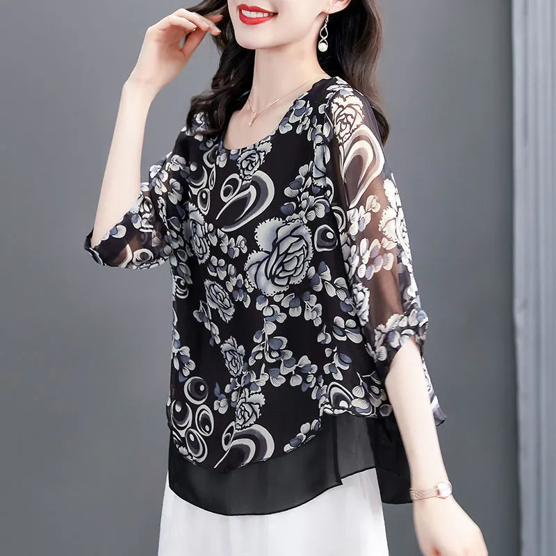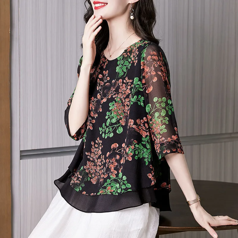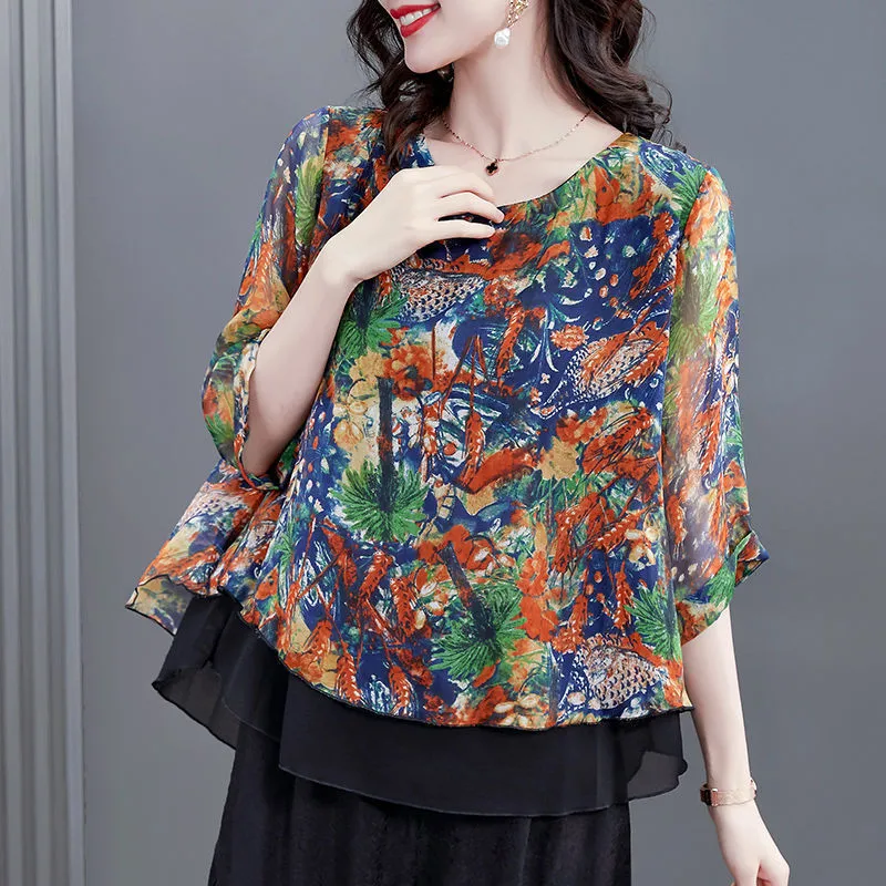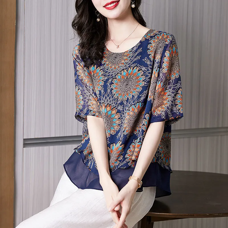 衣都精品- 2023新款漂亮時尚雪紡印花上衣