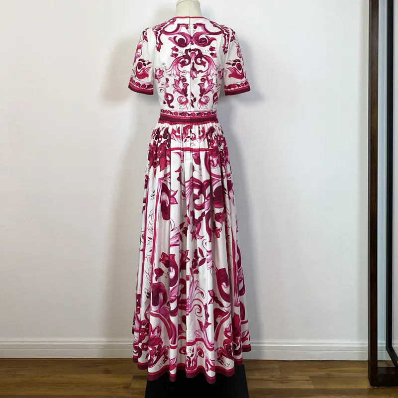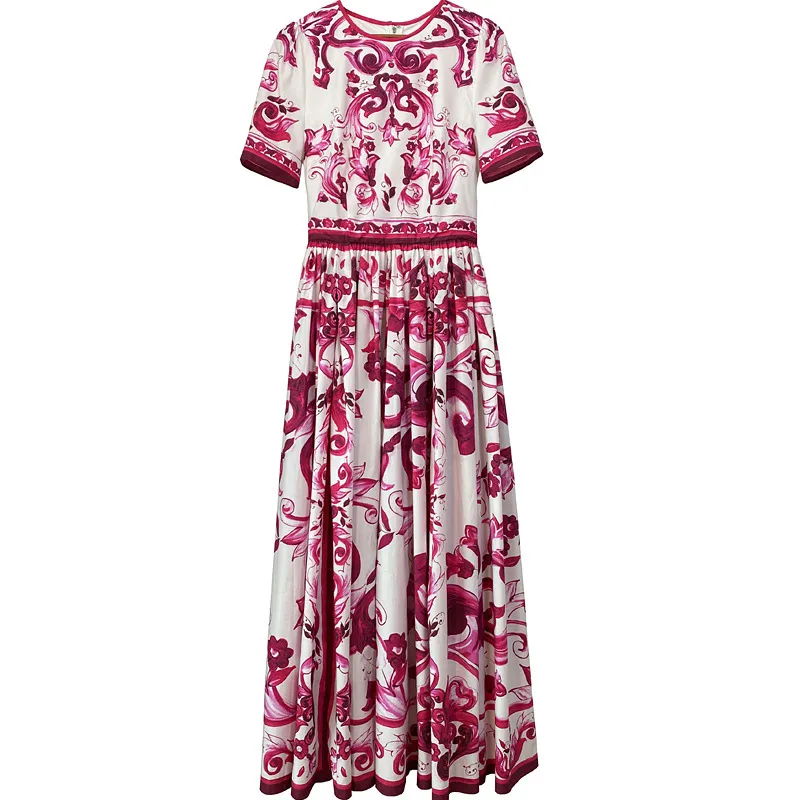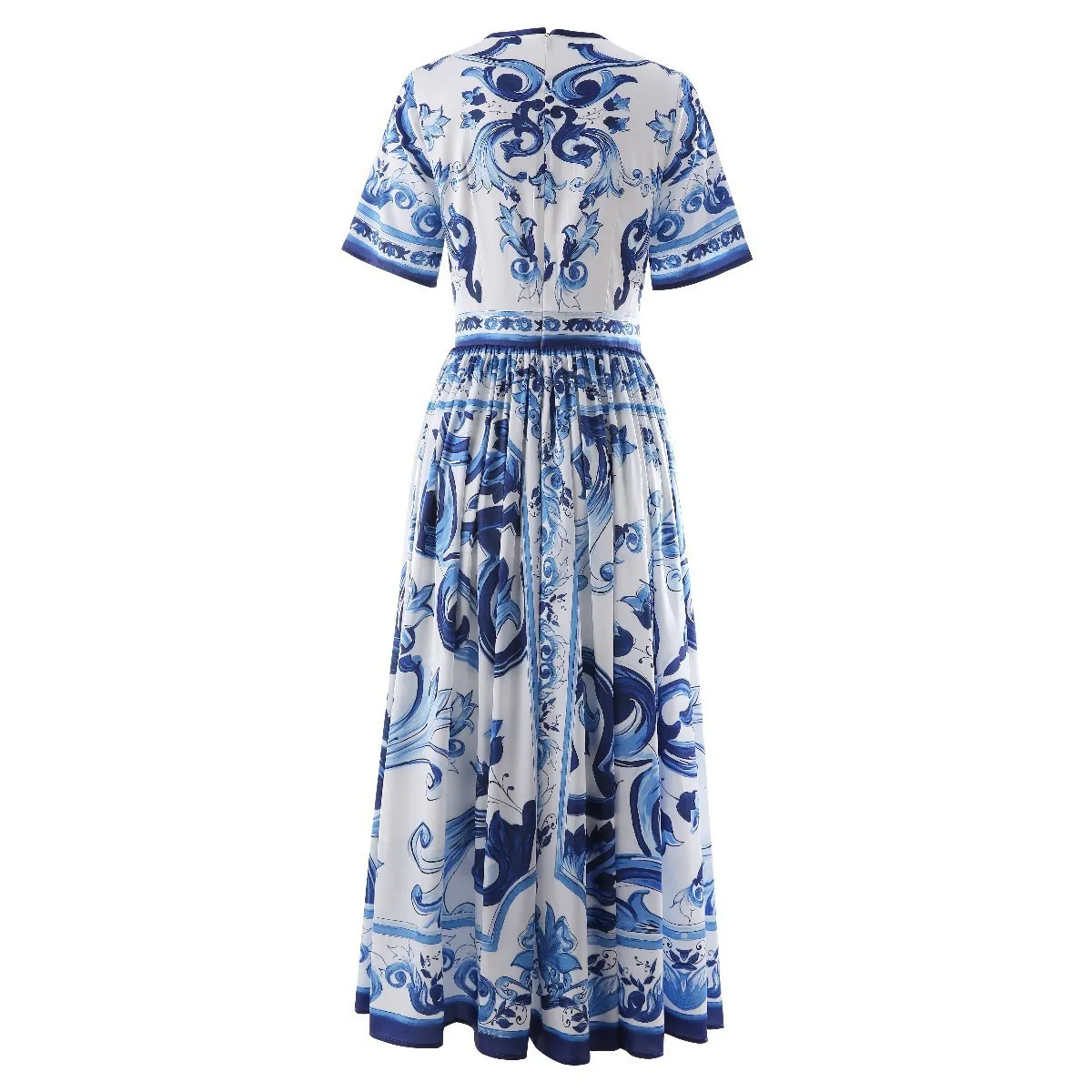 衣都精品- 2023新款歐美法式復古青花瓷印花氣質連衣裙