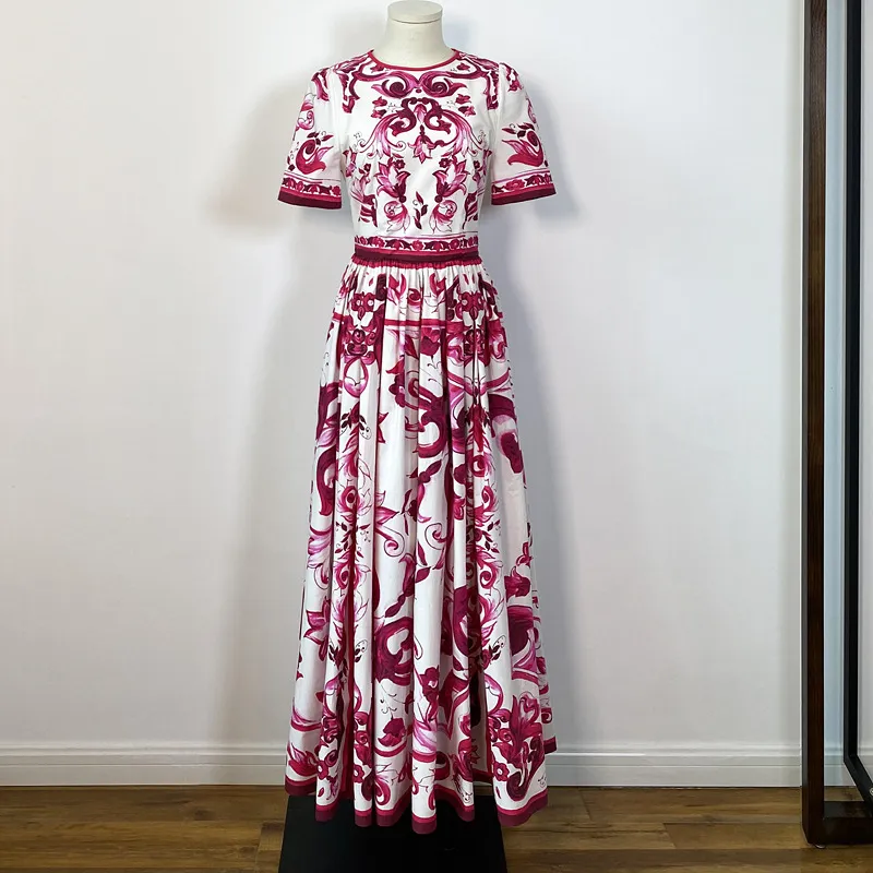 衣都精品- 2023新款田園風大碼印花短袖連衣裙
