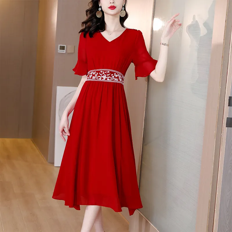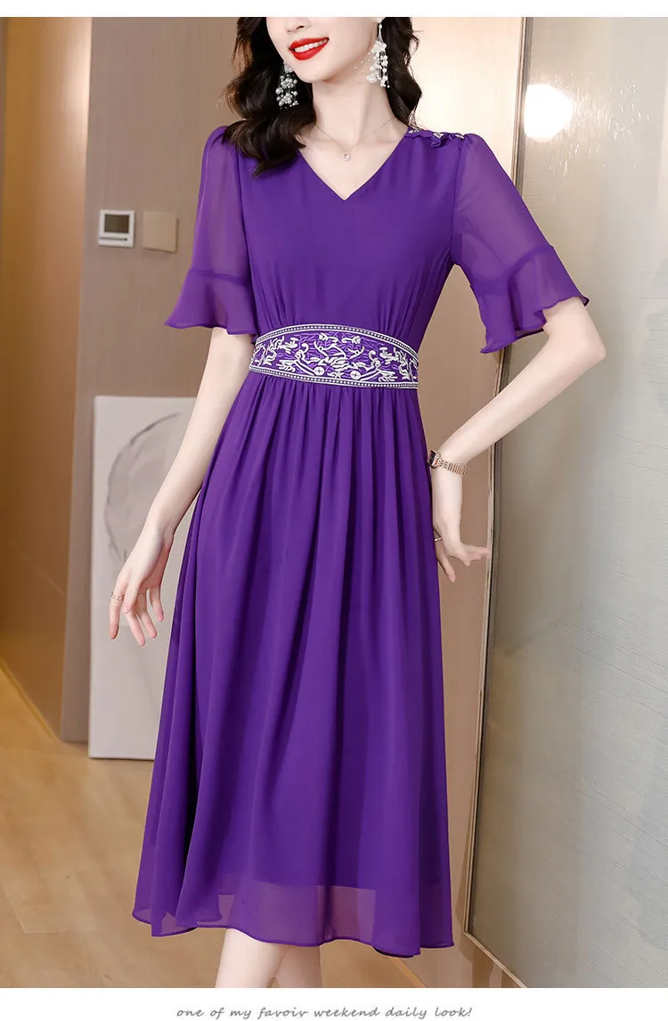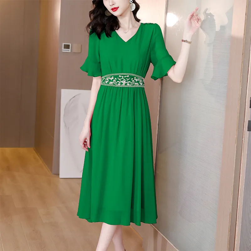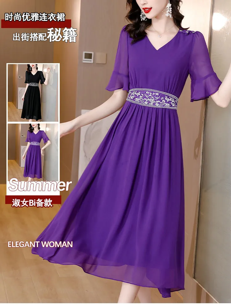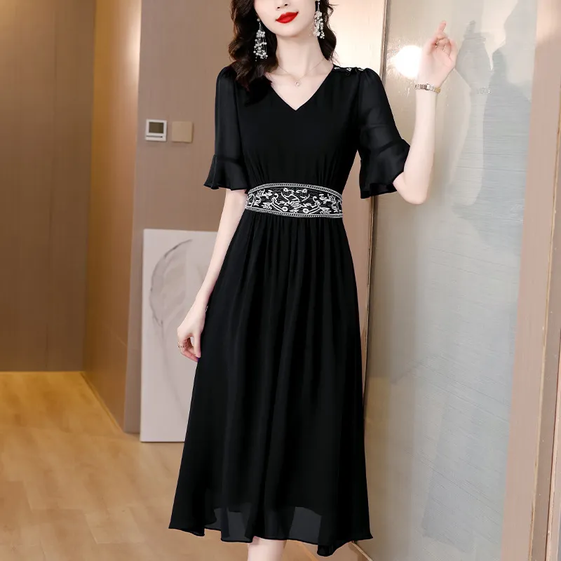 衣都精品- 2023新款時尚氣質寬鬆顯瘦刺繡香雲紗真絲連衣裙