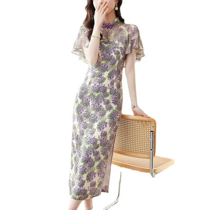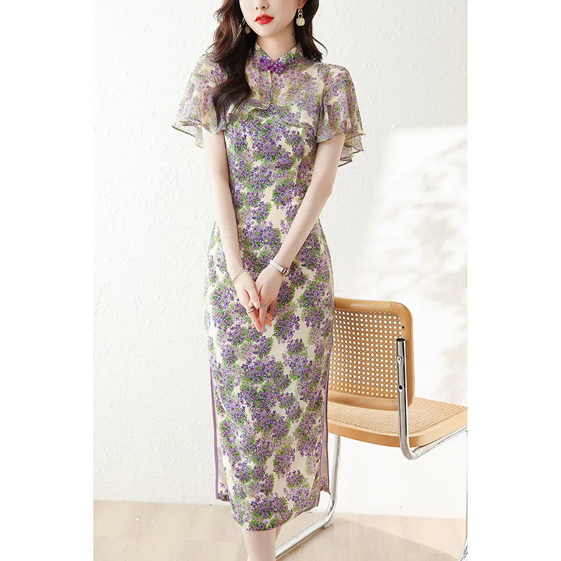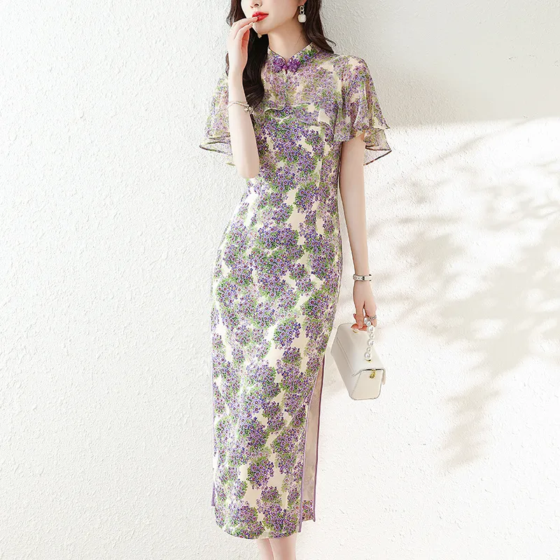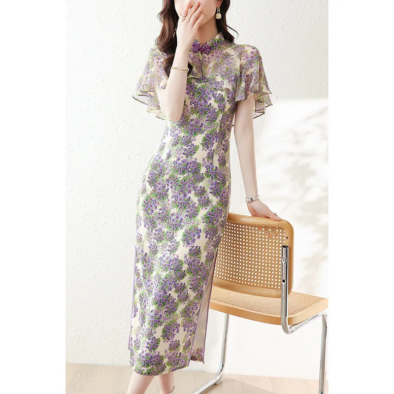 衣都精品- 2023新款法式氣質優雅甜美桑蠶絲碎花連衣裙