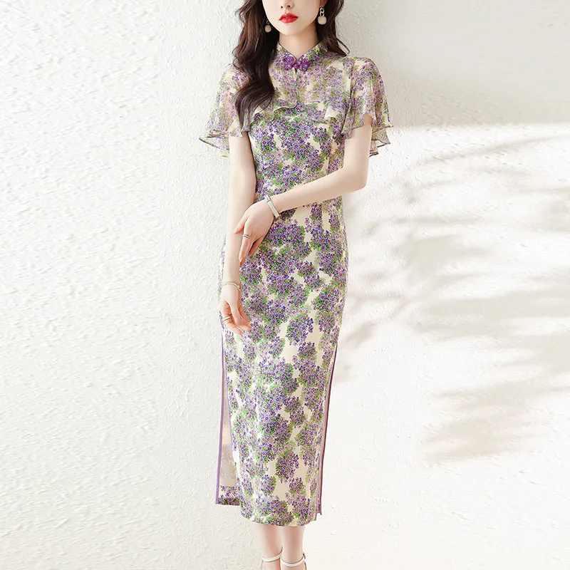 衣都精品- 2023新款復古風氣質文藝斗篷袖連衣裙