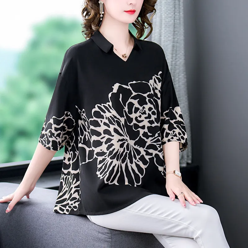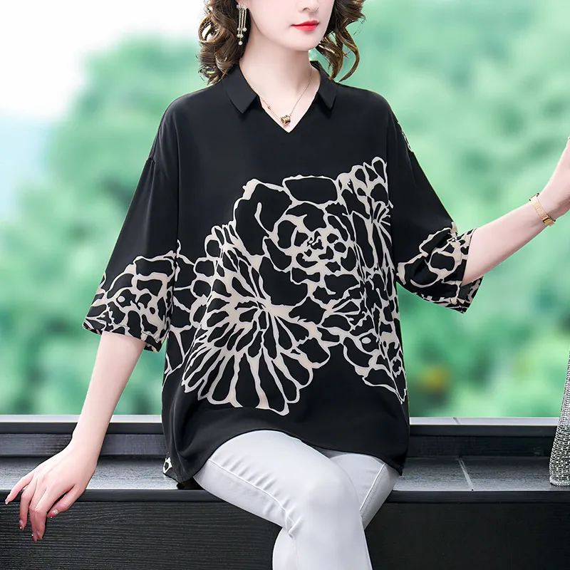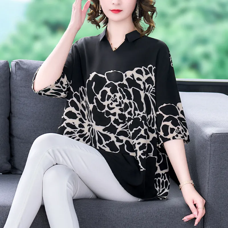衣都精品- 2023新款定位印花真絲百搭休閒上衣