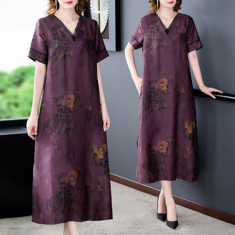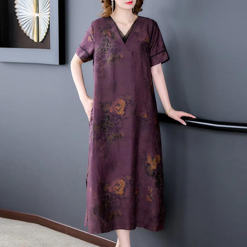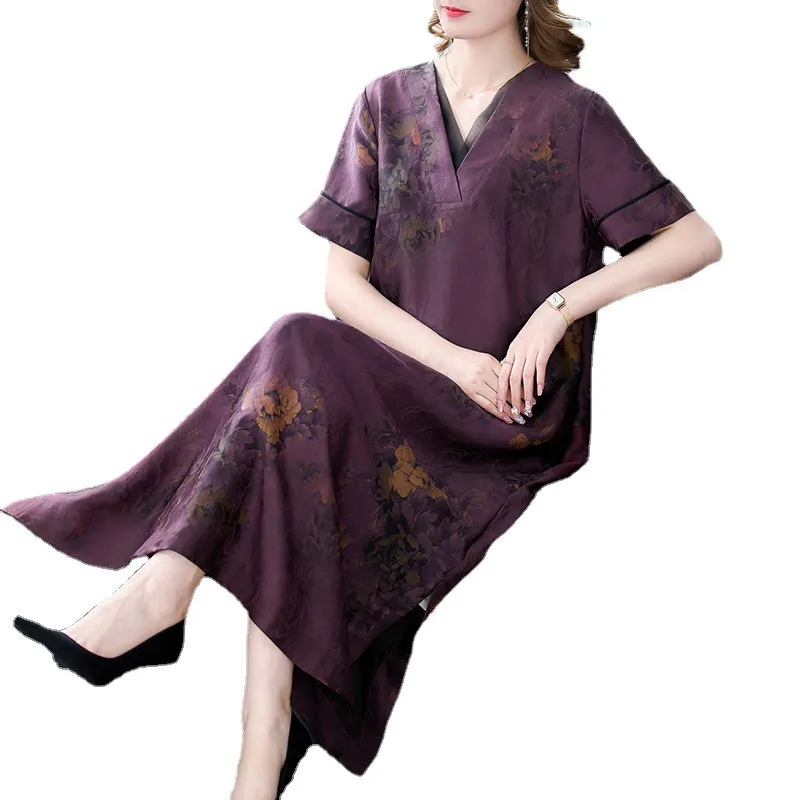 衣都精品- 2023新款復古寬鬆民族風真絲提花連衣裙