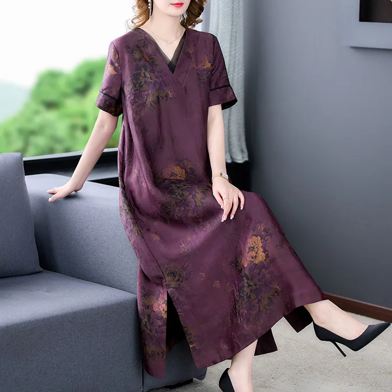 衣都精品- 2023新款復古花色拼接香雲紗印花連衣裙