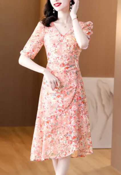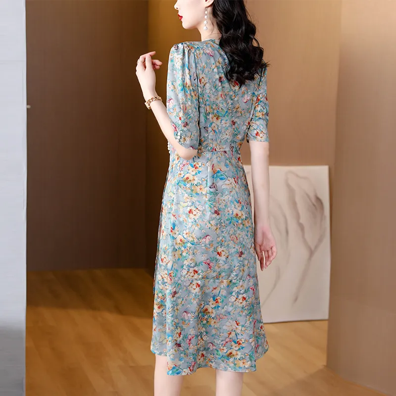 衣都精品- 2023新款法式浪漫印花雪紡連衣裙