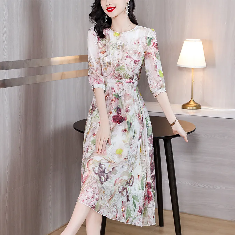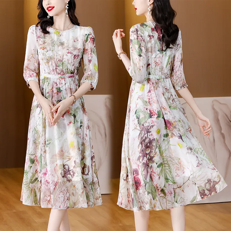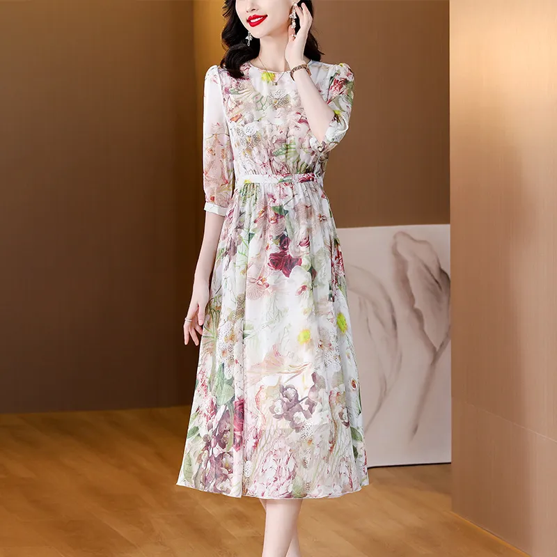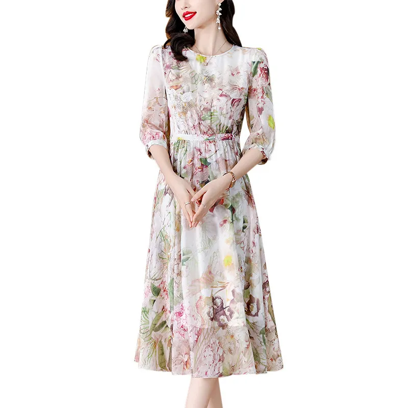 衣都精品- 2023新款法式浪漫印花雪紡連衣裙