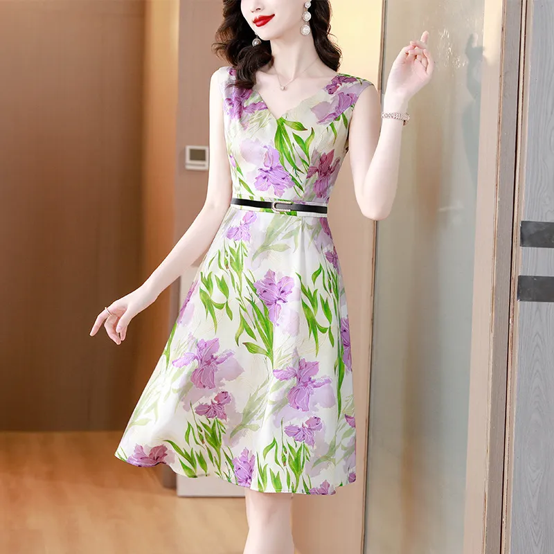 衣都精品- 2023新款法式浪漫印花雪紡連衣裙