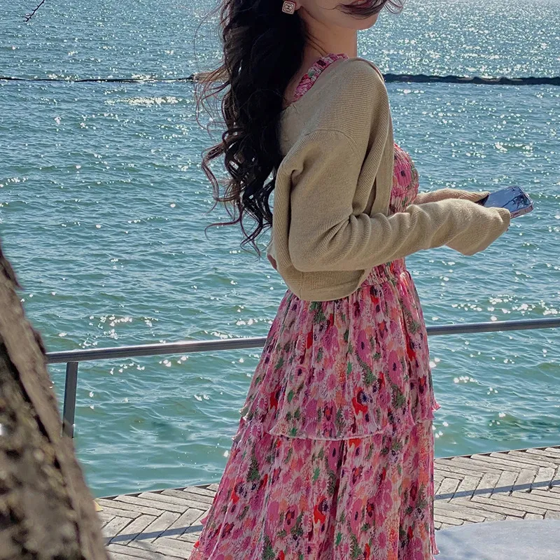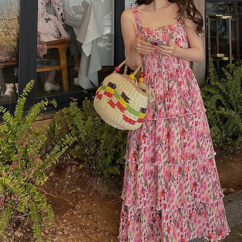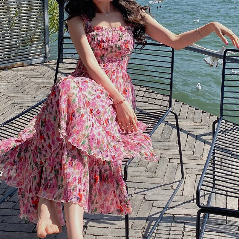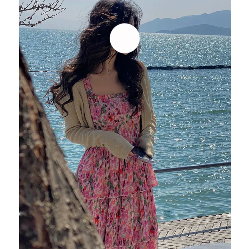 衣都精品- 2023新款法式度假風碎花吊帶連衣裙