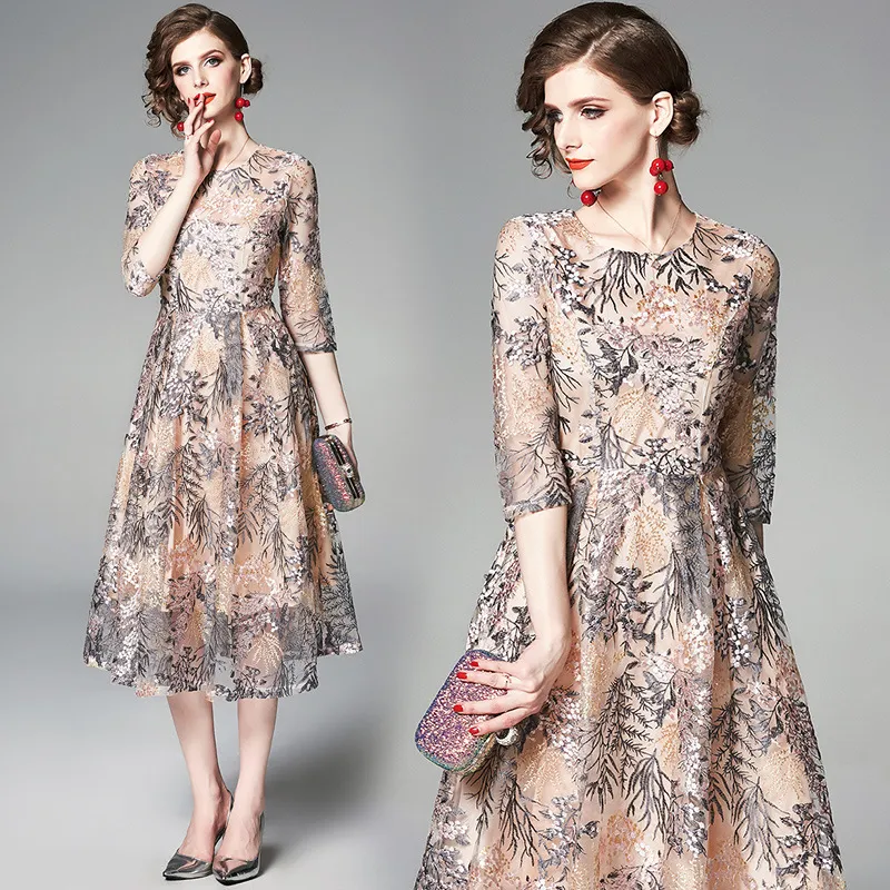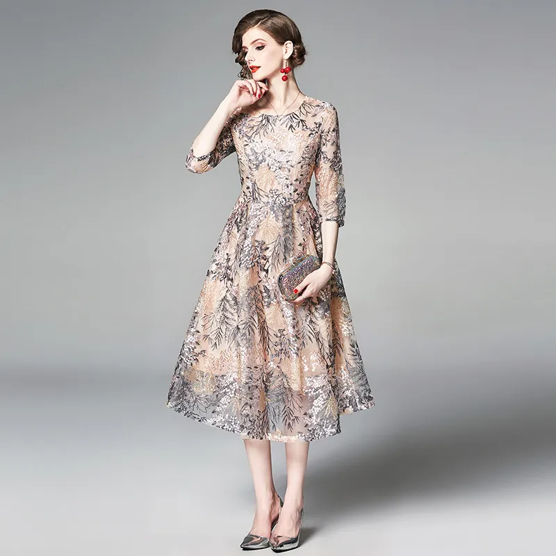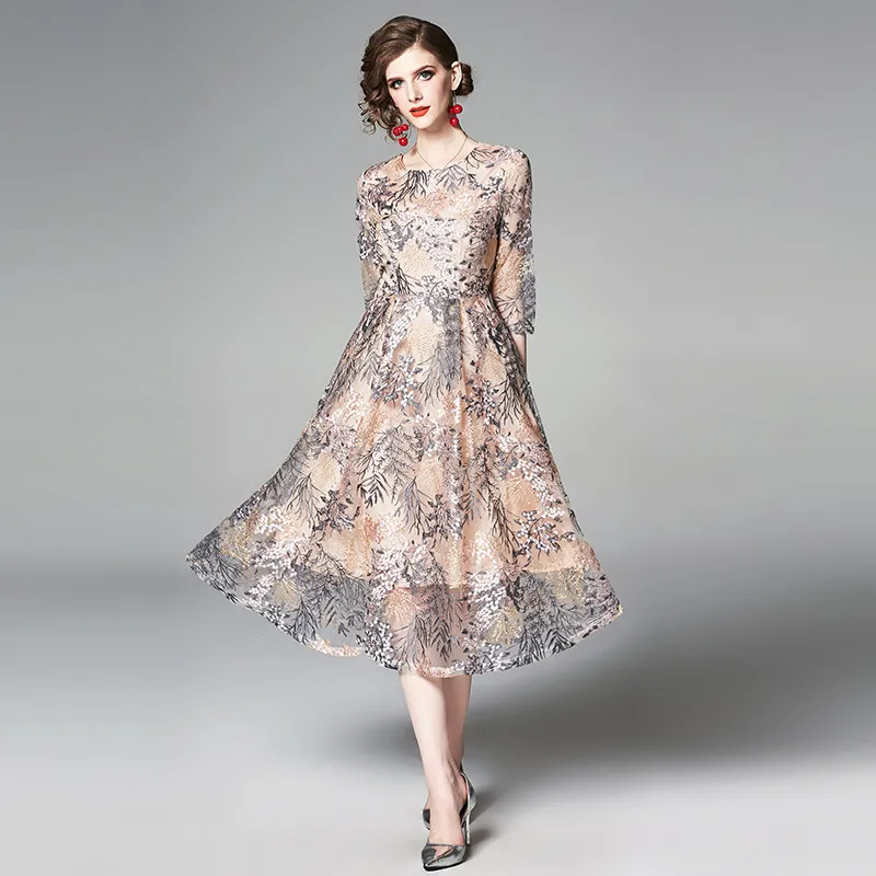 衣都精品- 2023新款氣質刺繡修身顯瘦優雅連衣裙