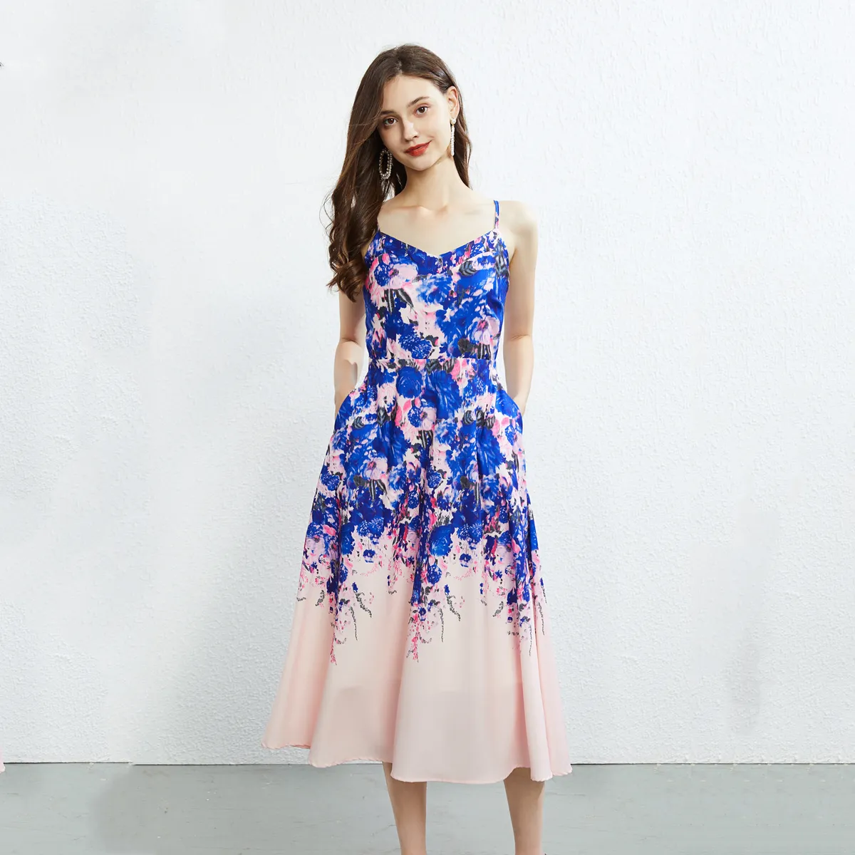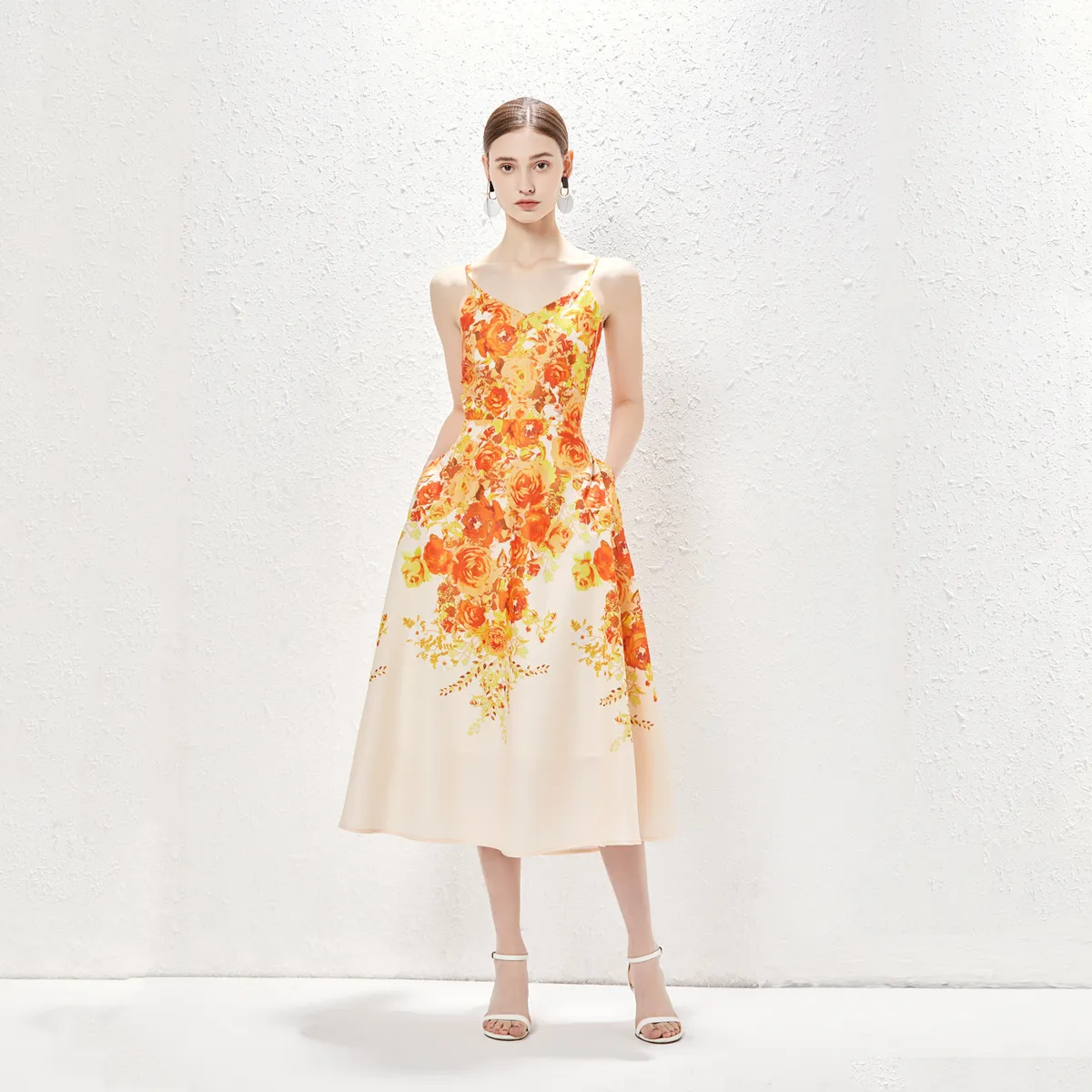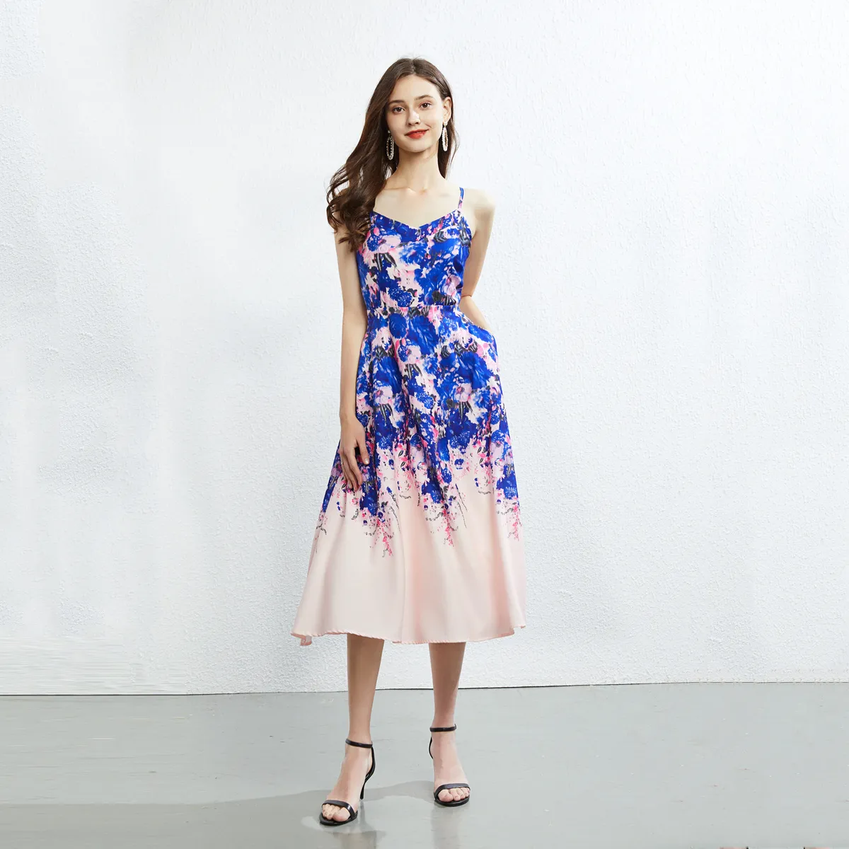 衣都精品- 2023新款時尚度假風印花吊帶連衣裙