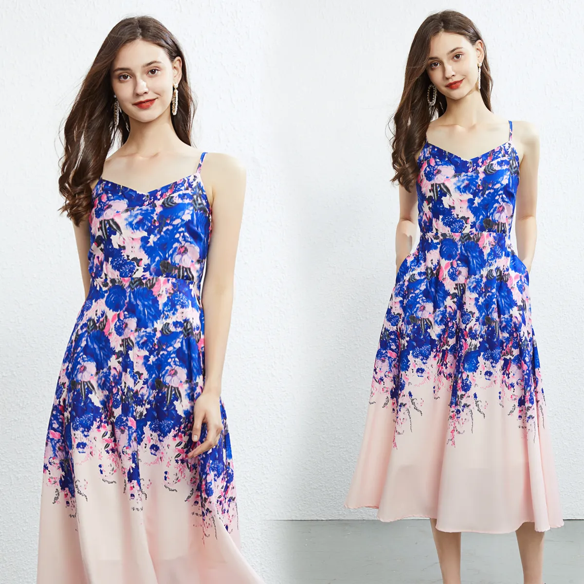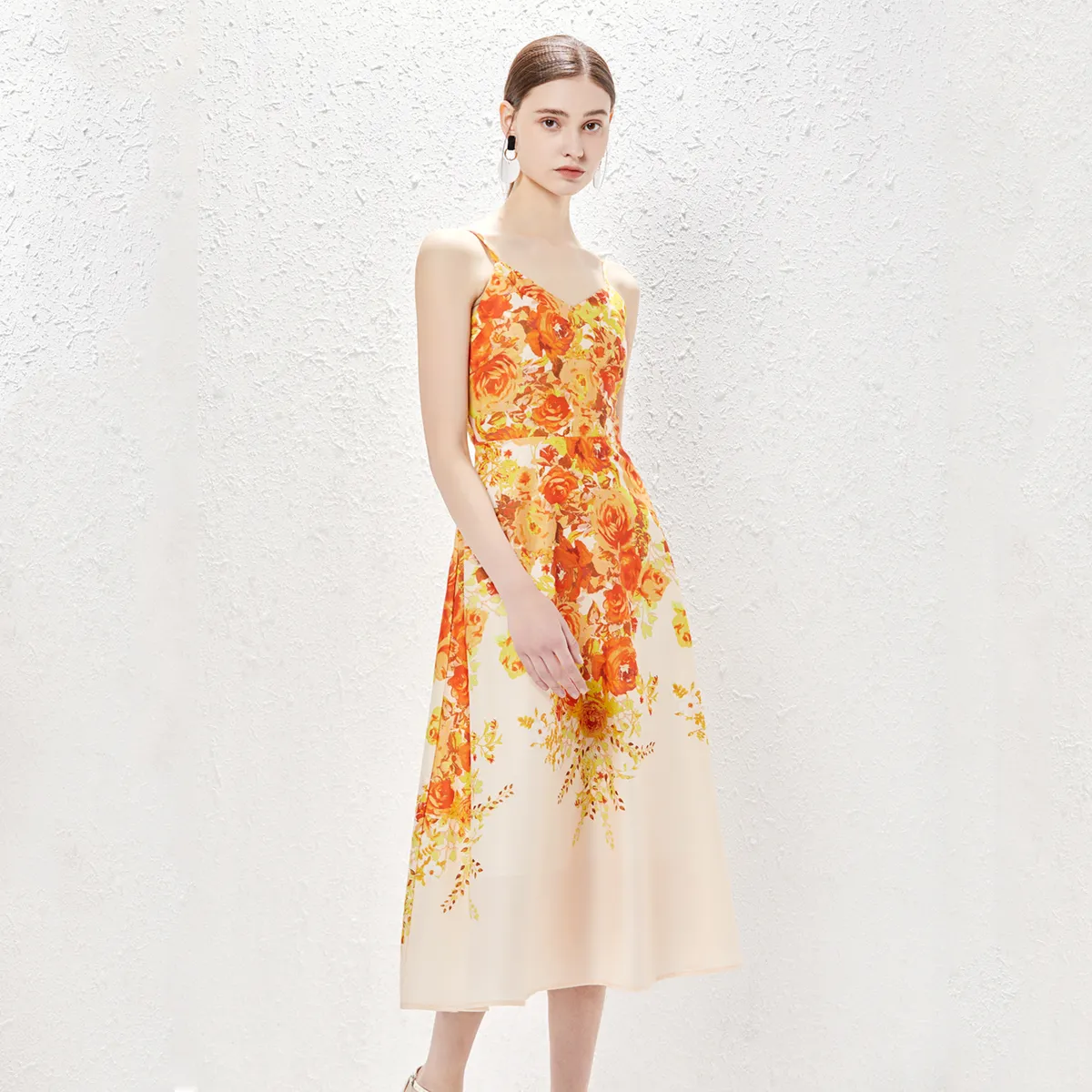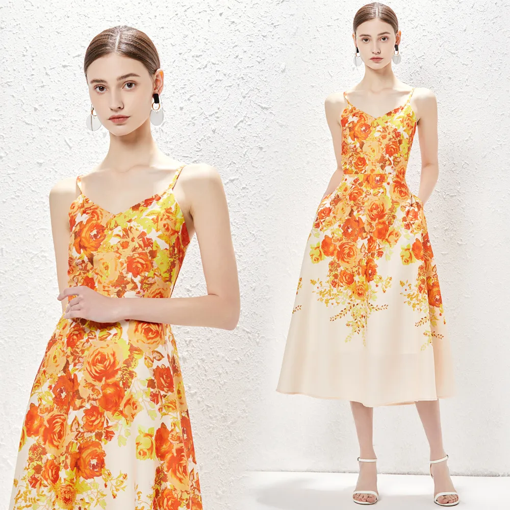 衣都精品- 2023新款時尚度假風印花吊帶連衣裙