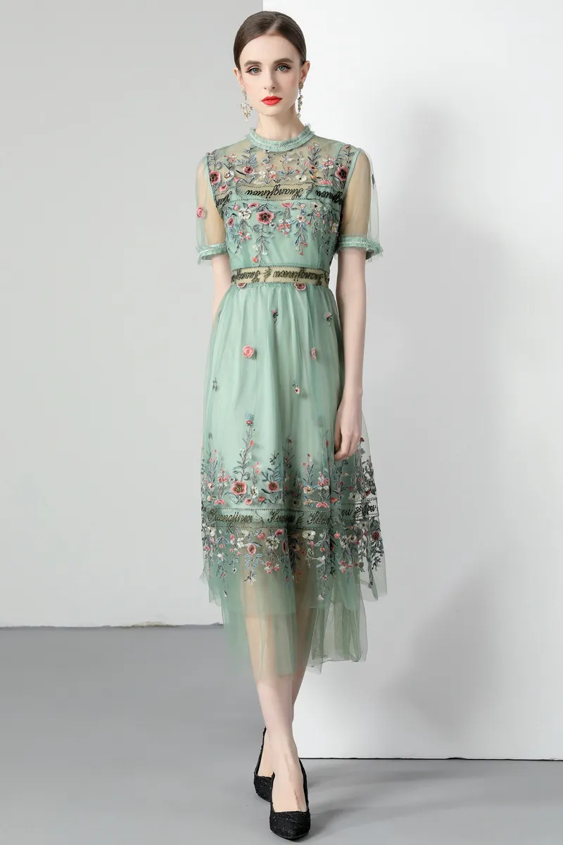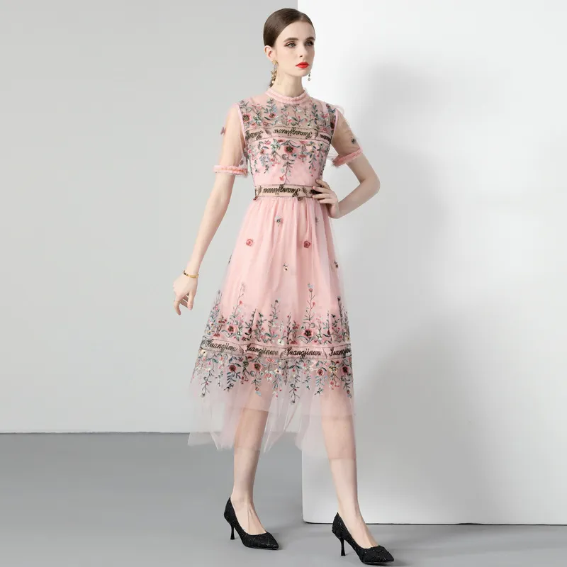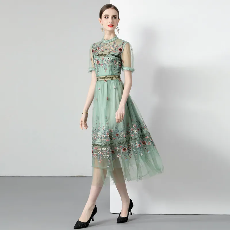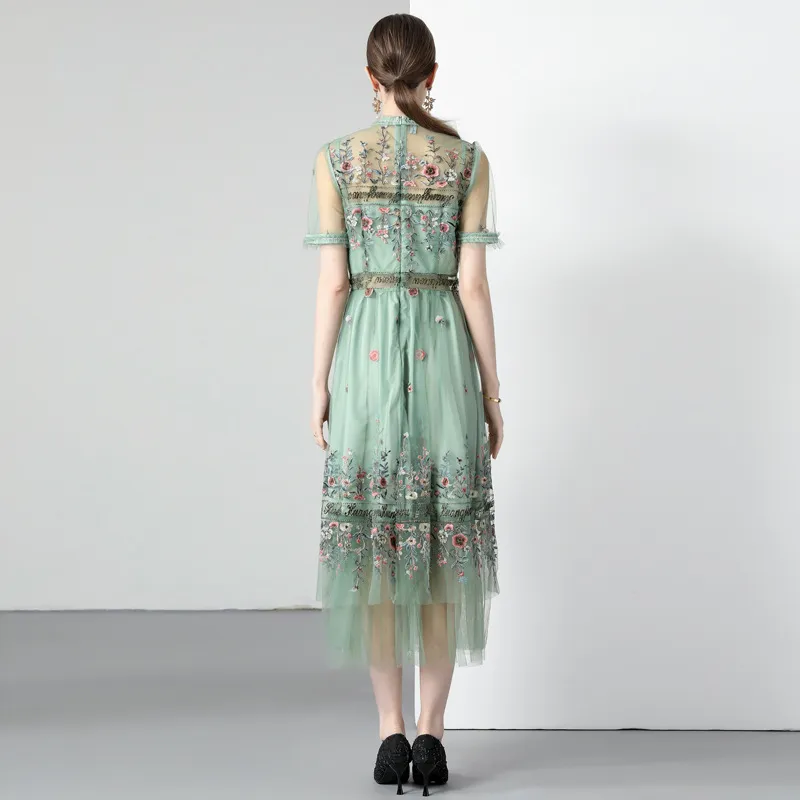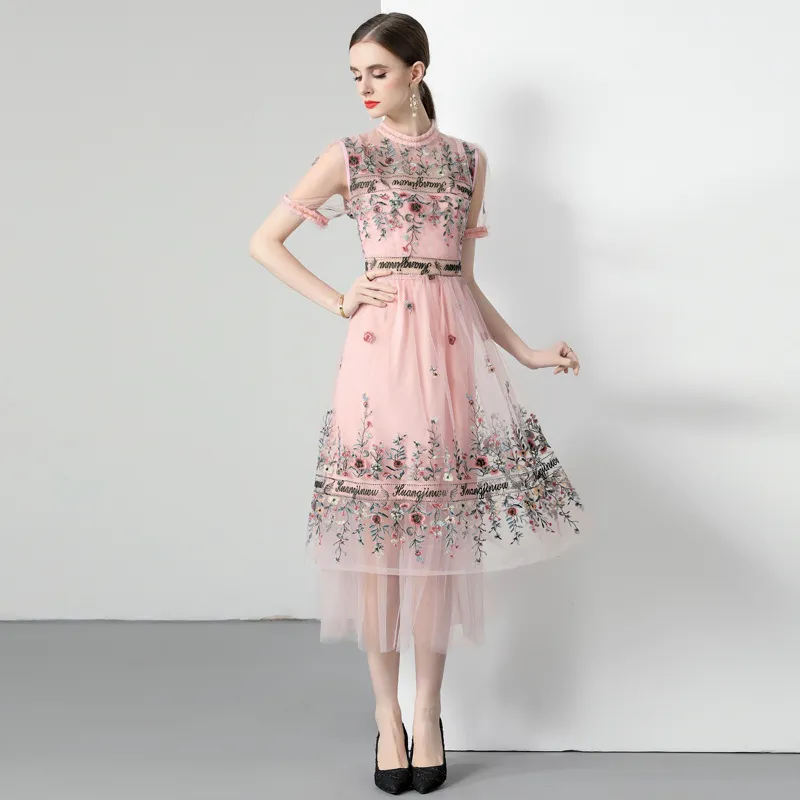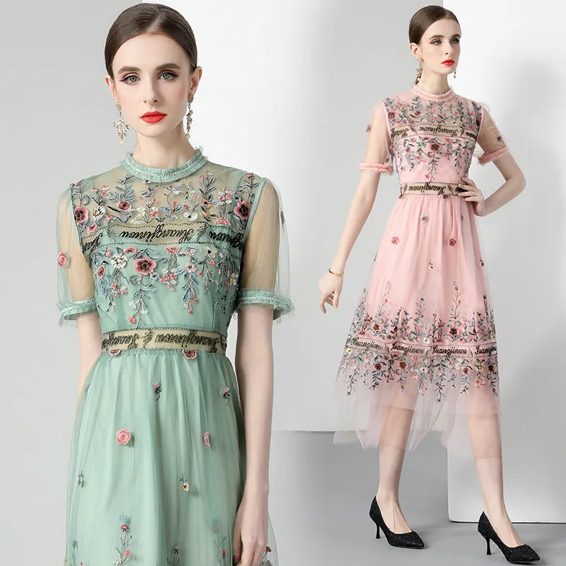 衣都精品- 2023新款網紗刺繡浪漫花邊圓領連衣裙