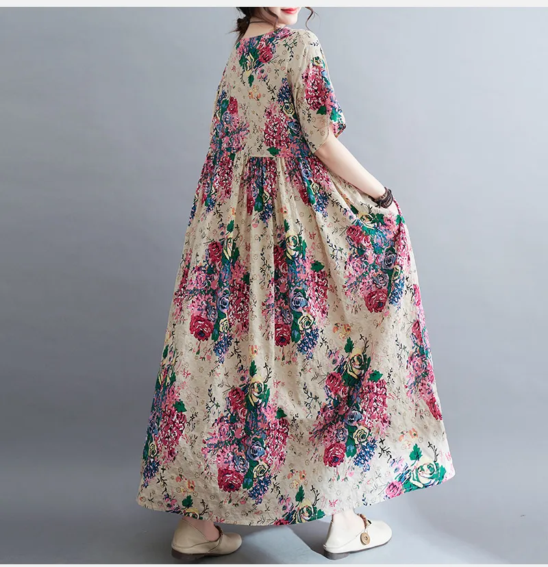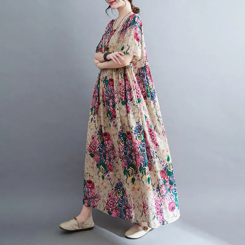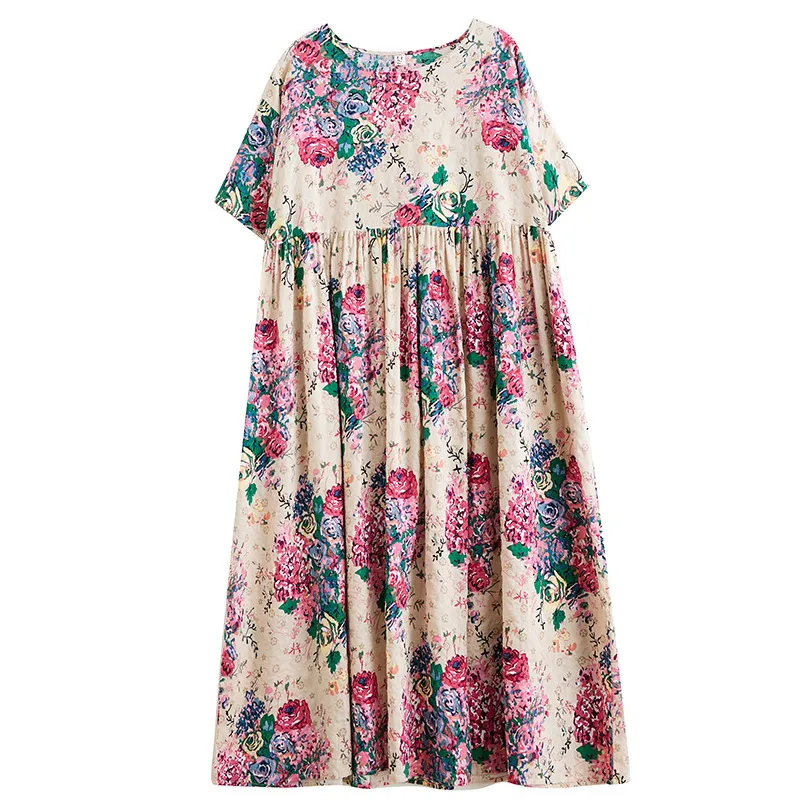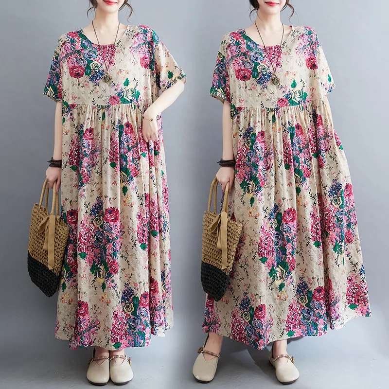 衣都精品- 2023新款田園風大碼印花短袖連衣裙