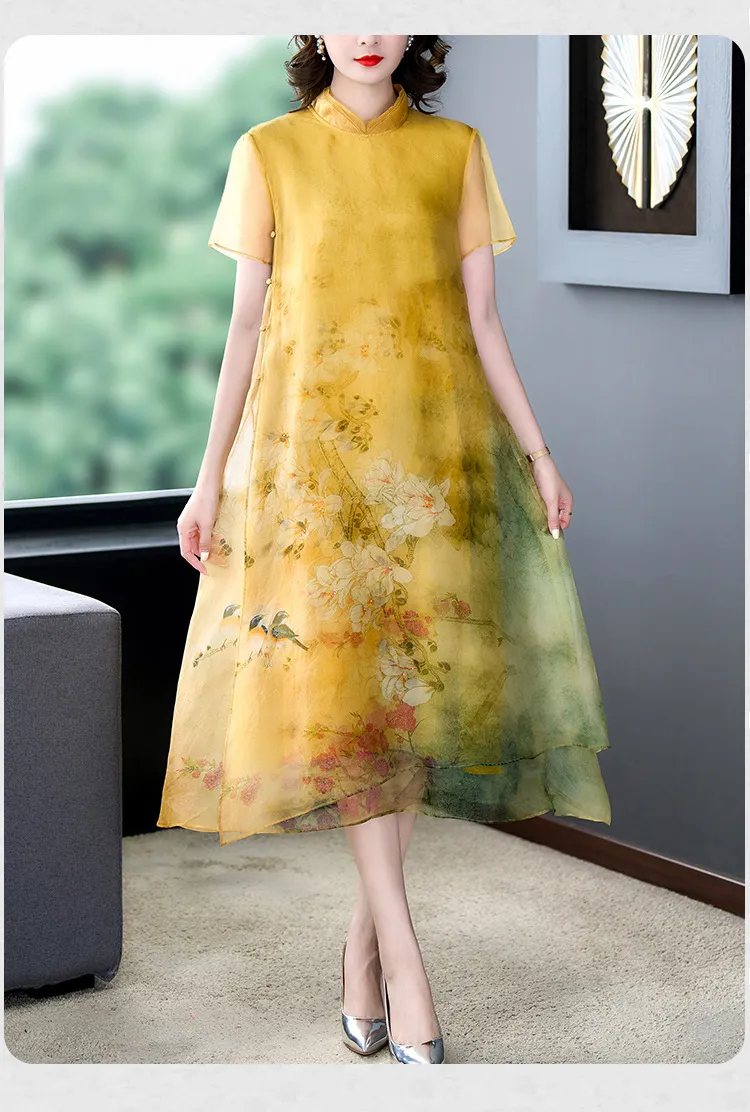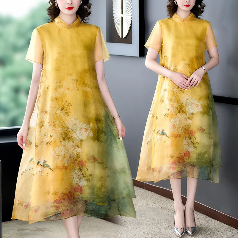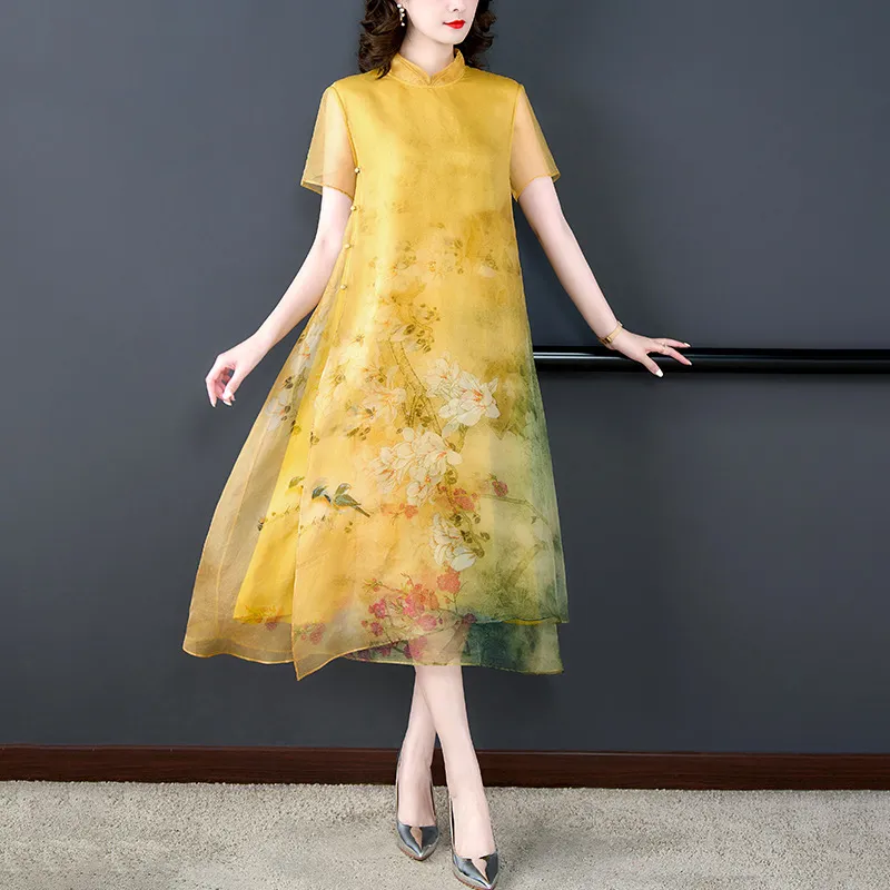 衣都精品- 2023新款復古優雅中國風印花連衣裙