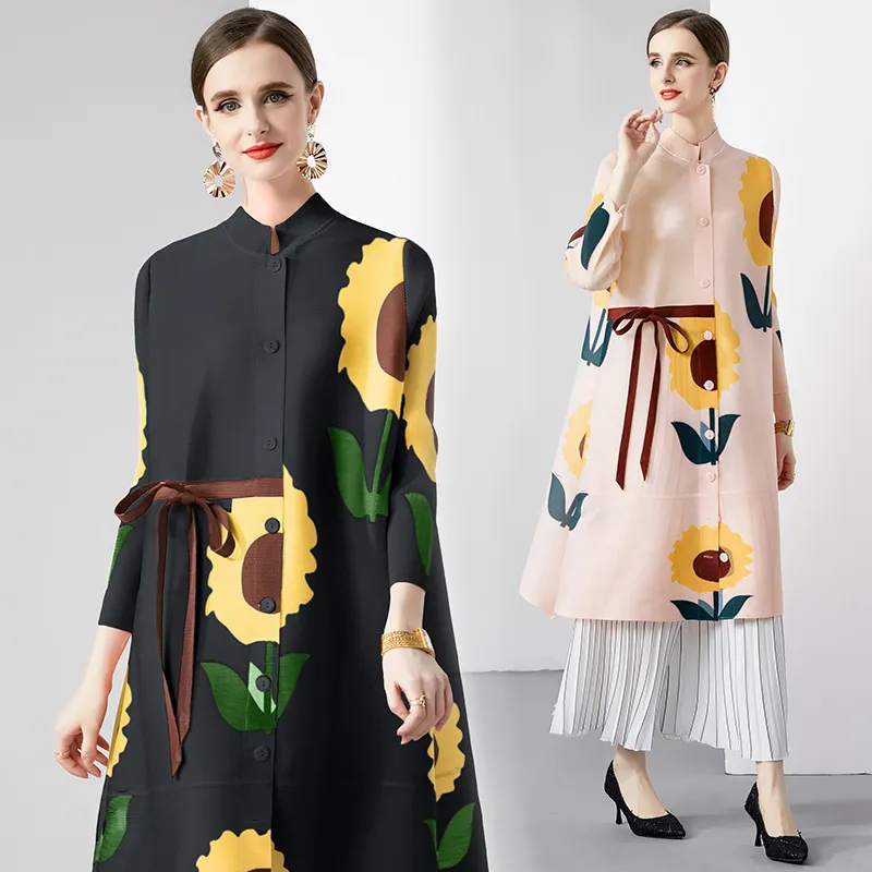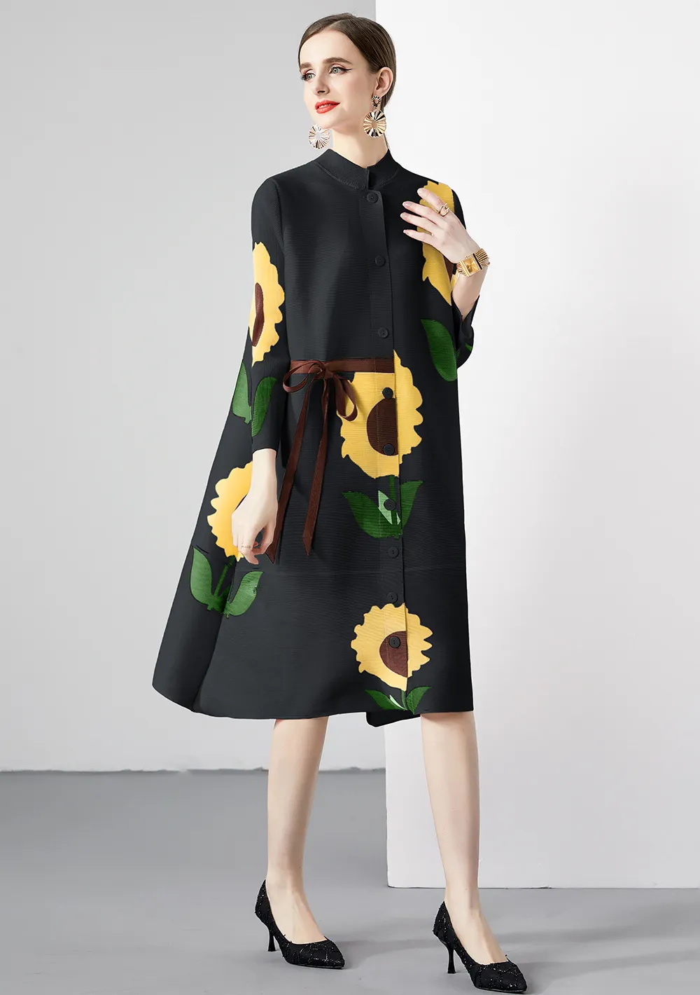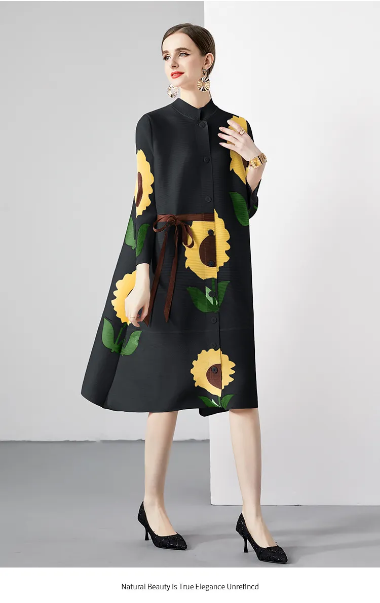 衣都精品- 2023新款時尚復古印花立領長袖連衣裙