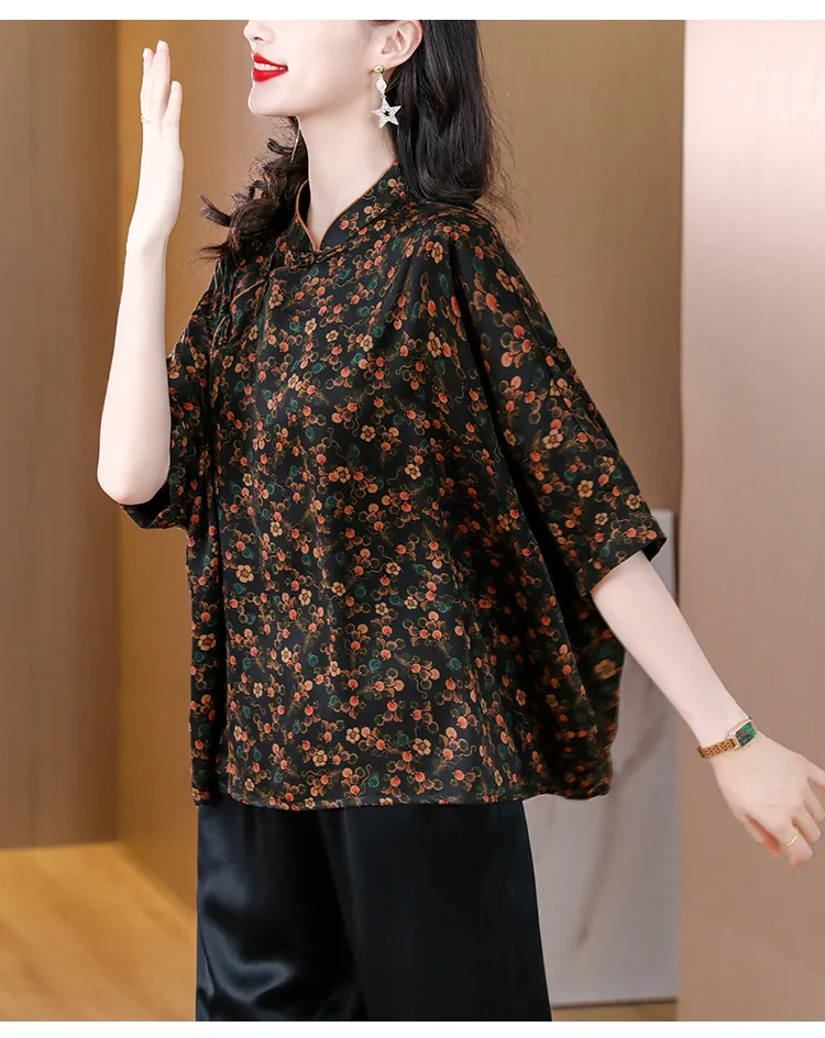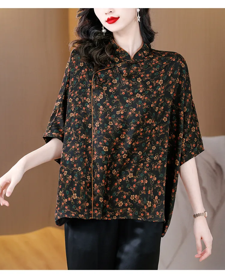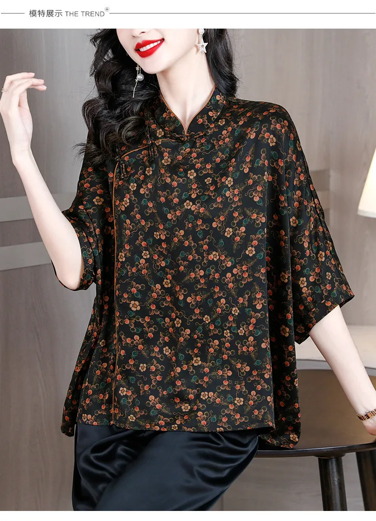 衣都精品- 2023新款時尚復古優雅顯瘦印花上衣