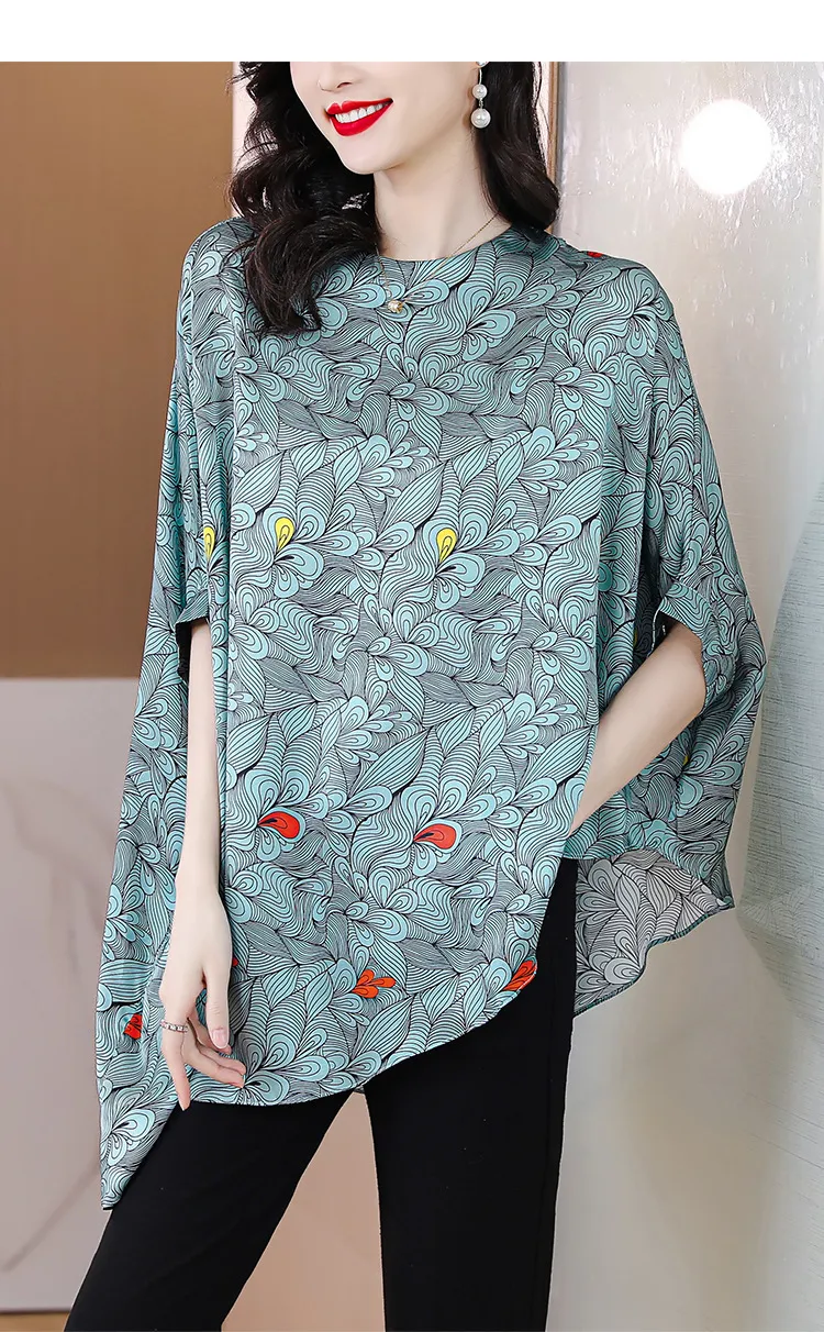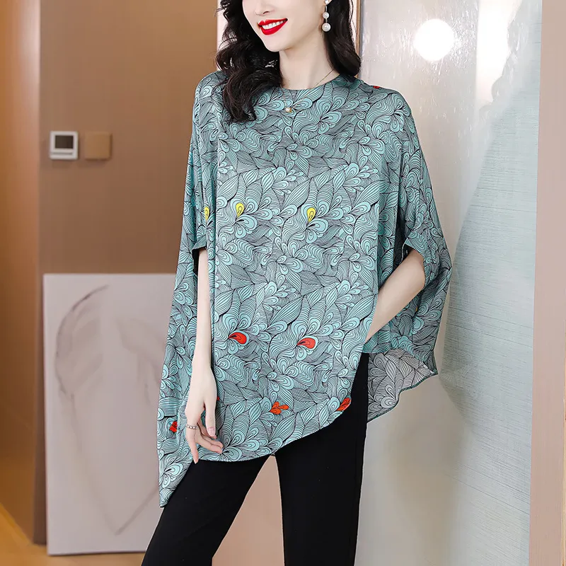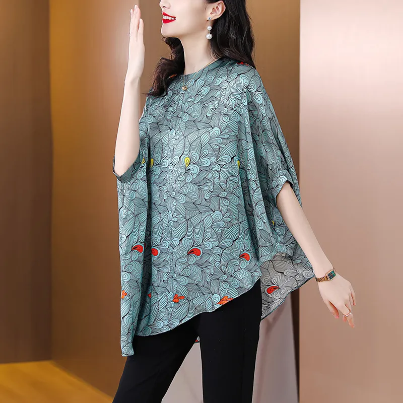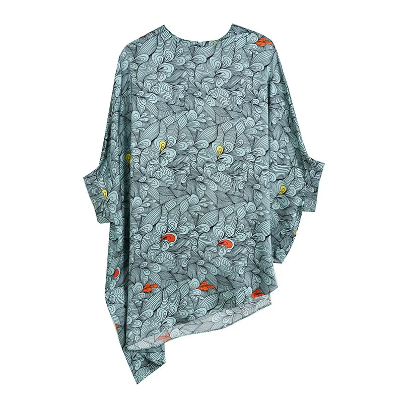 衣都精品- 2023新款時尚設計感復古印花蝙蝠袖上衣