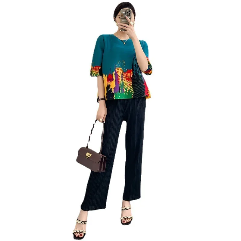 衣都精品- 2023新款時尚設計感復古印花蝙蝠袖上衣