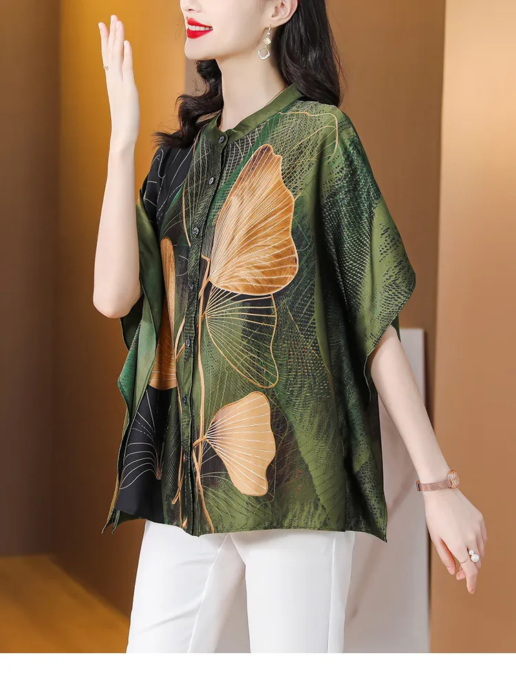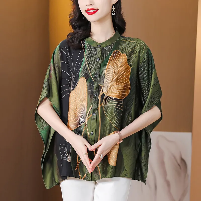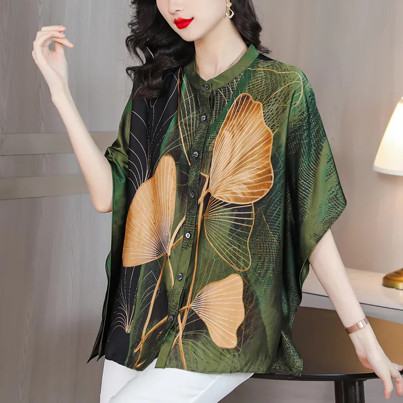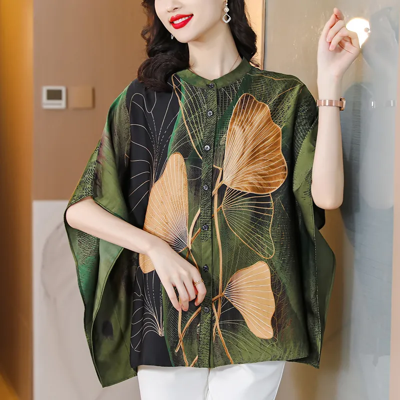 衣都精品- 2023新款時尚設計感復古印花蝙蝠袖上衣