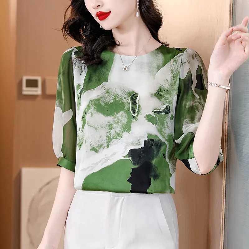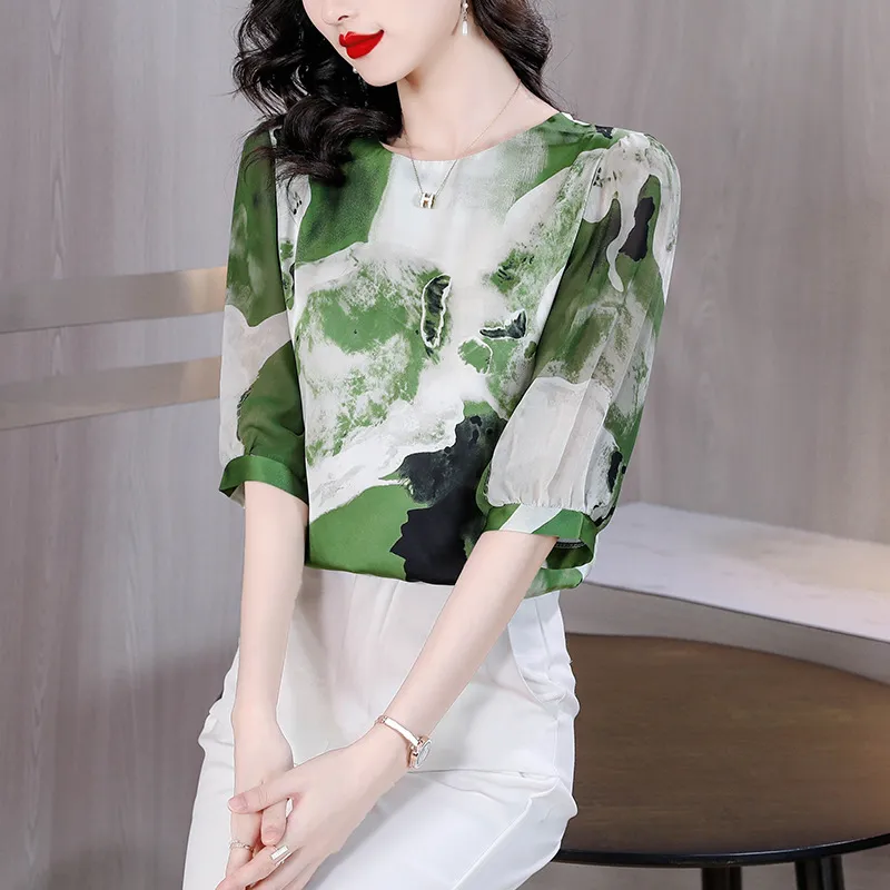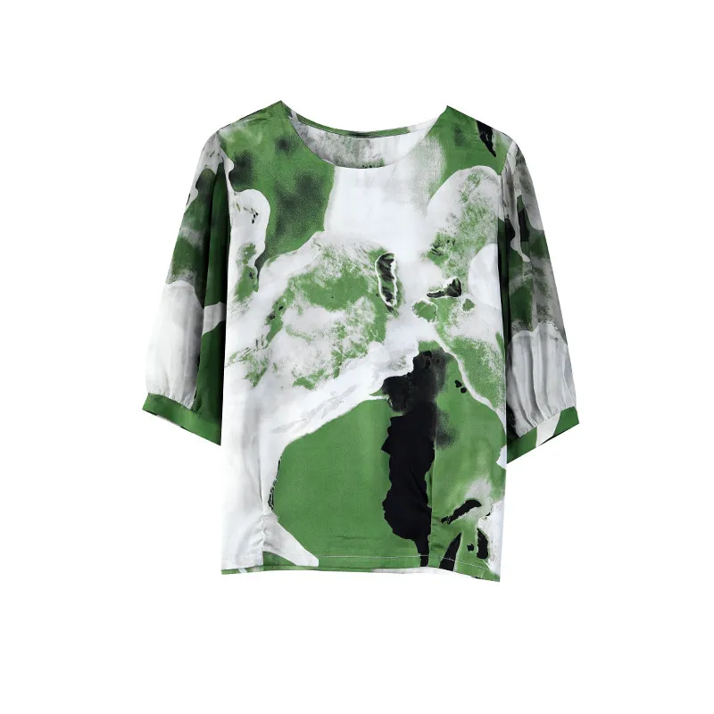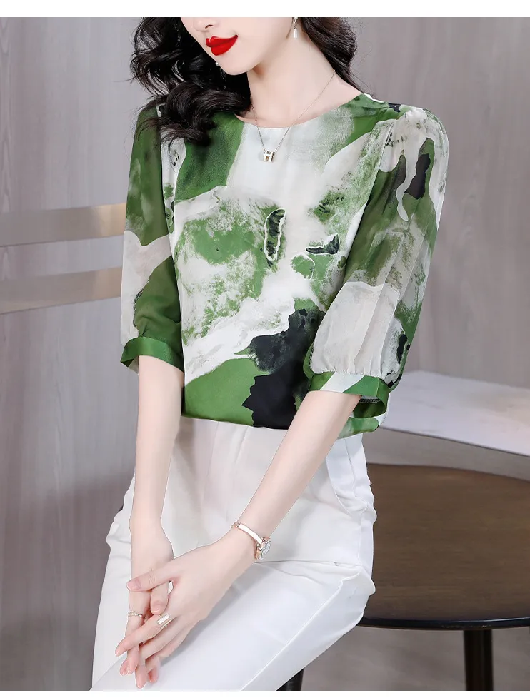 衣都精品- 2023新款時尚復古優雅顯瘦印花上衣