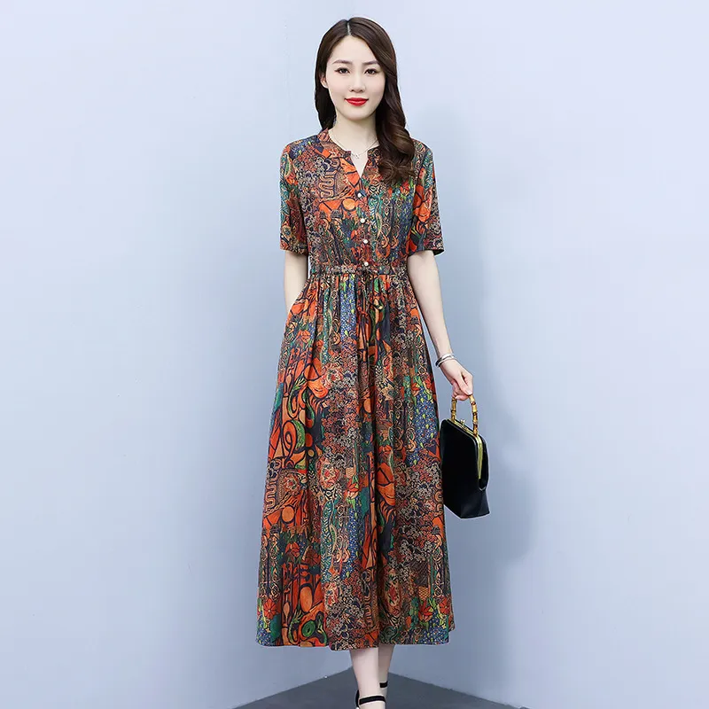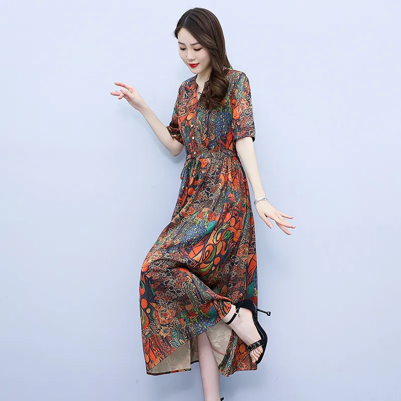 衣都精品- 2023新款復古香雲紗寬鬆大碼印花連衣裙
