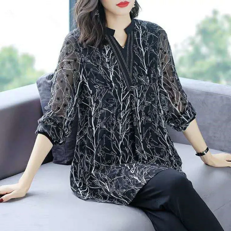 衣都精品- 2023新款短袖女V領氣質洋氣寬鬆上衣