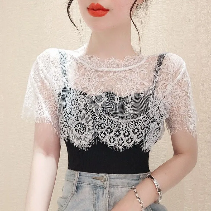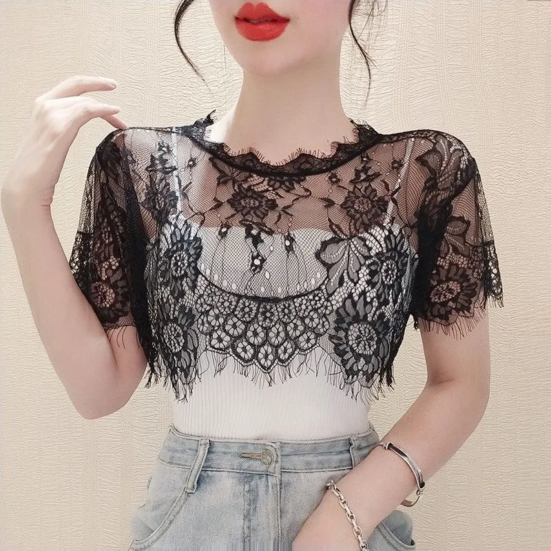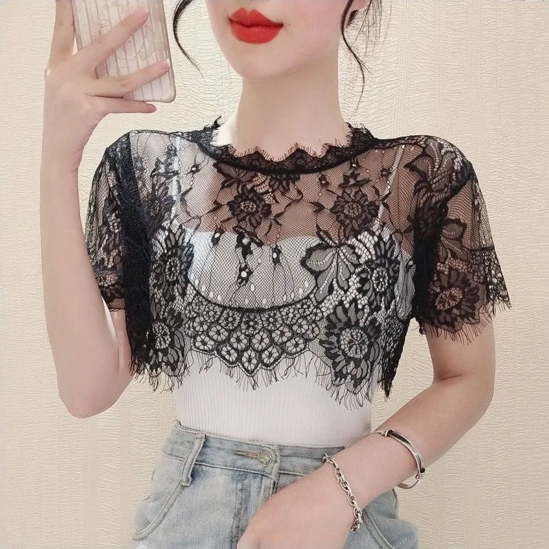 衣都精品- 2023新款薄款蕾絲外搭罩衫假領子