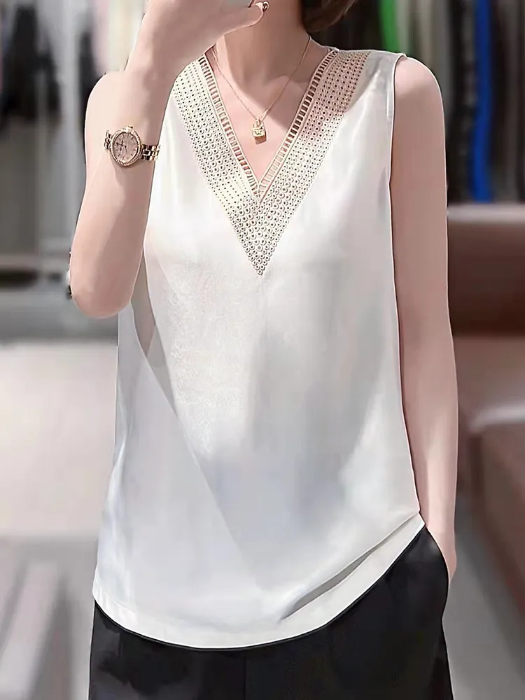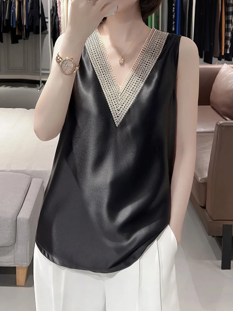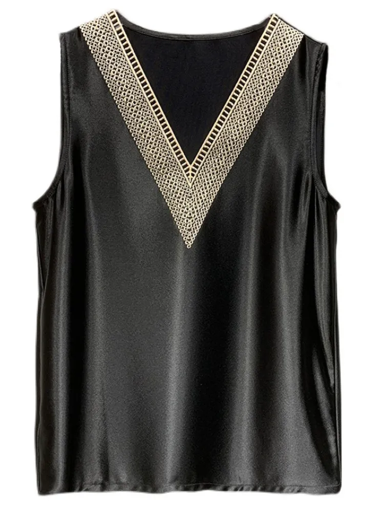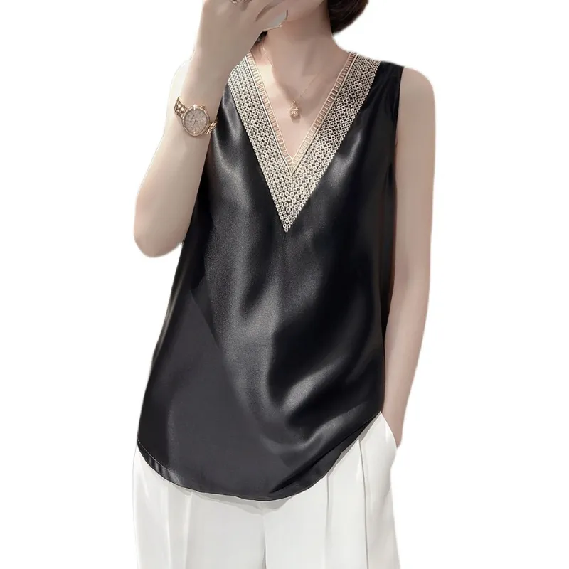 衣都精品- 2023新款刺繡V領緞面吊帶背心外套