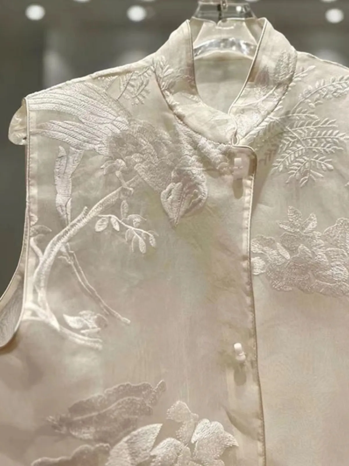 衣都精品- 2023新款中國風花鳥圖案刺繡背心外套