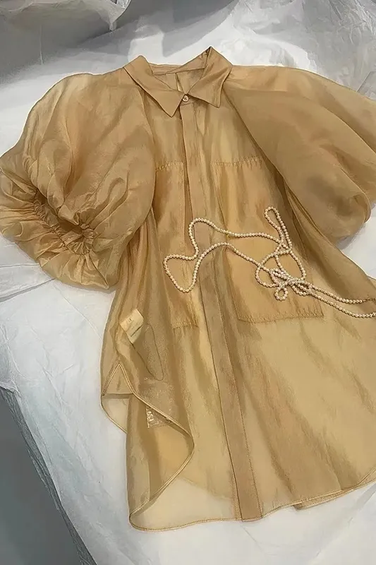 衣都精品- 2023新款顯瘦仙氣薄款泡泡袖上衣