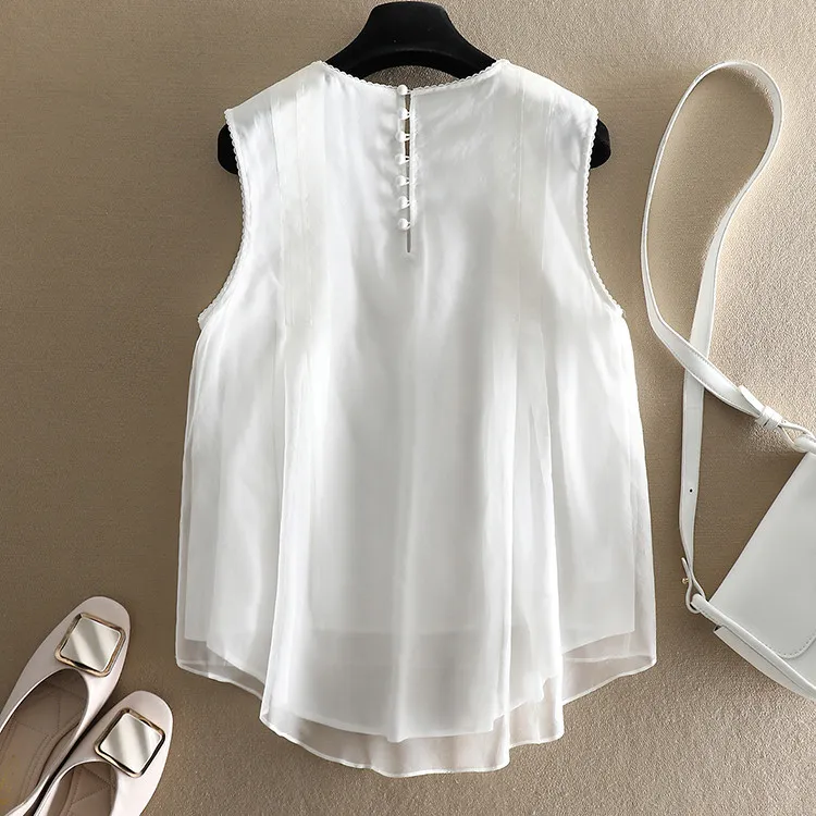 衣都精品- 2023新款歐根紗重工刺繡圓領無袖上衣