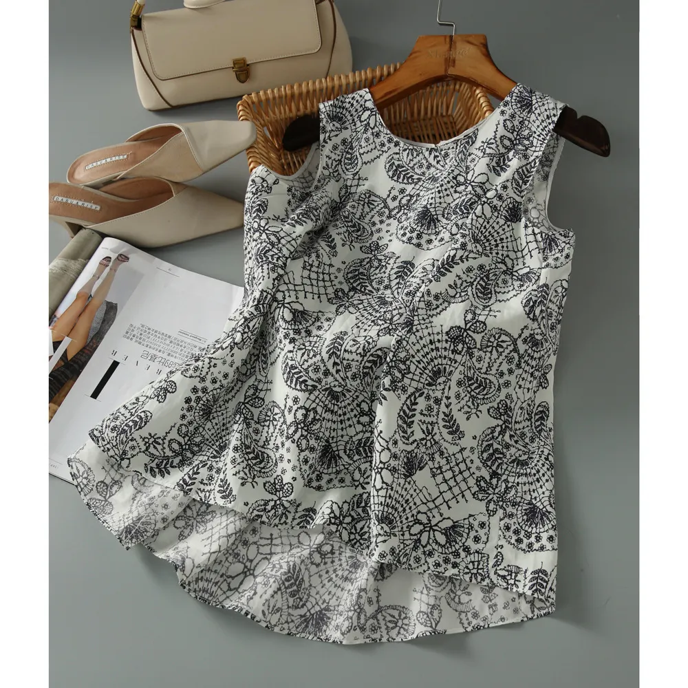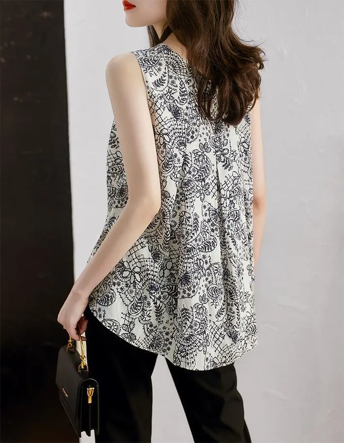 衣都精品- 2023新款復古曼妙工筆劃印花上衣