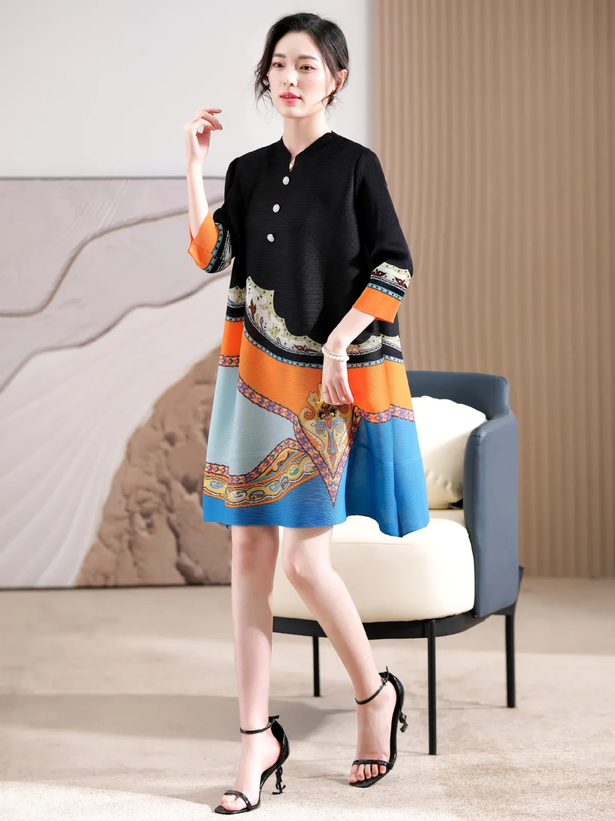 衣都精品- 2023新款3D印花時尚高級感百褶半身裙