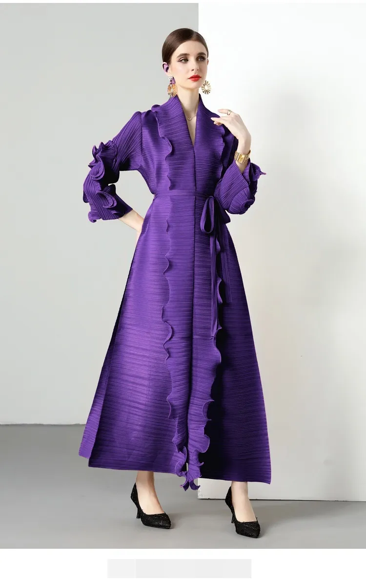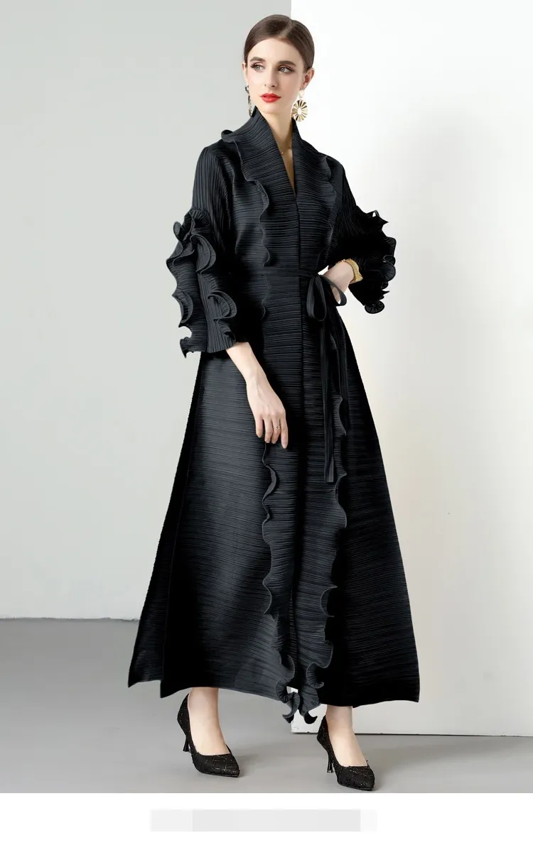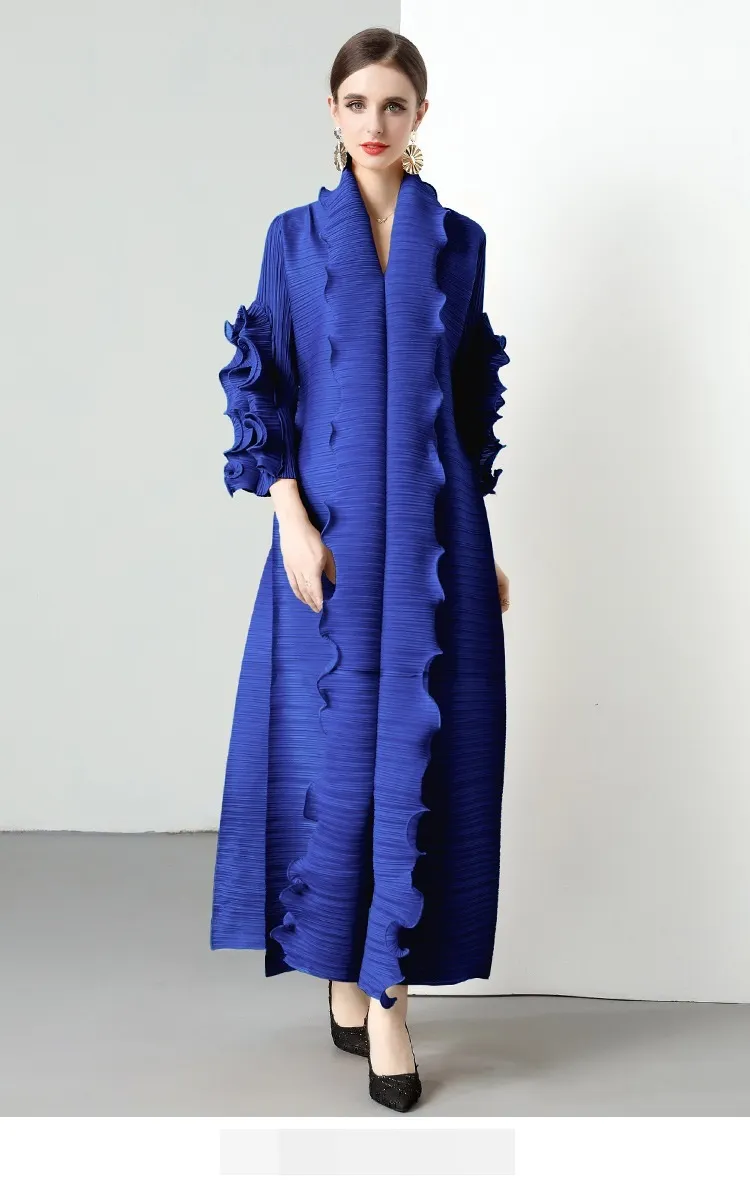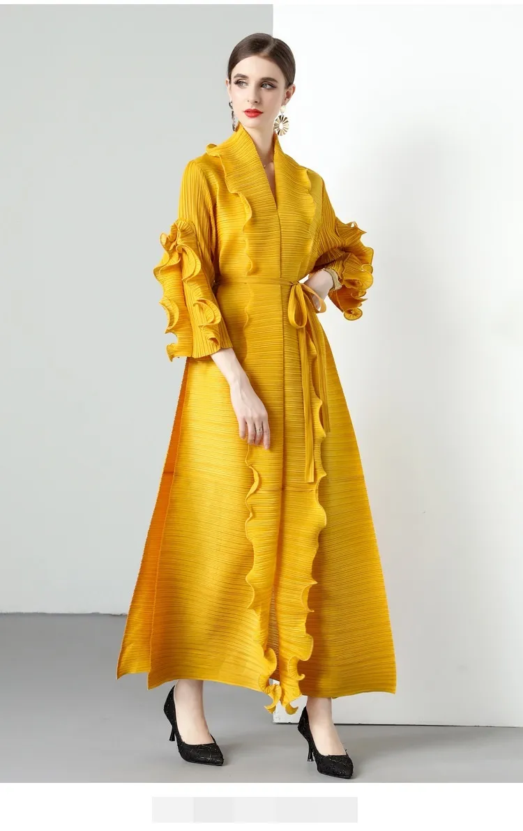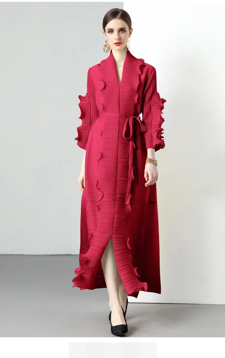 衣都精品- 2023新款復古荷葉邊高彈褶皺大擺連衣裙