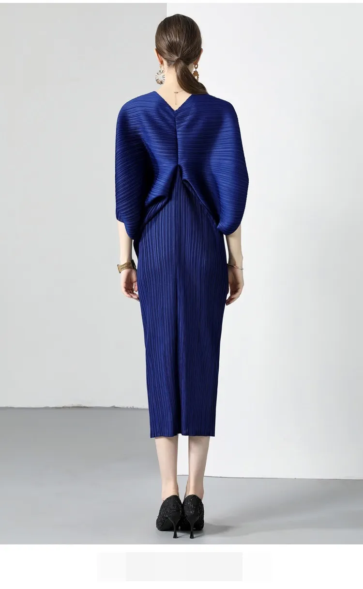 衣都精品- 2023新款復古時尚漸變暈染高彈褶皺連衣裙
