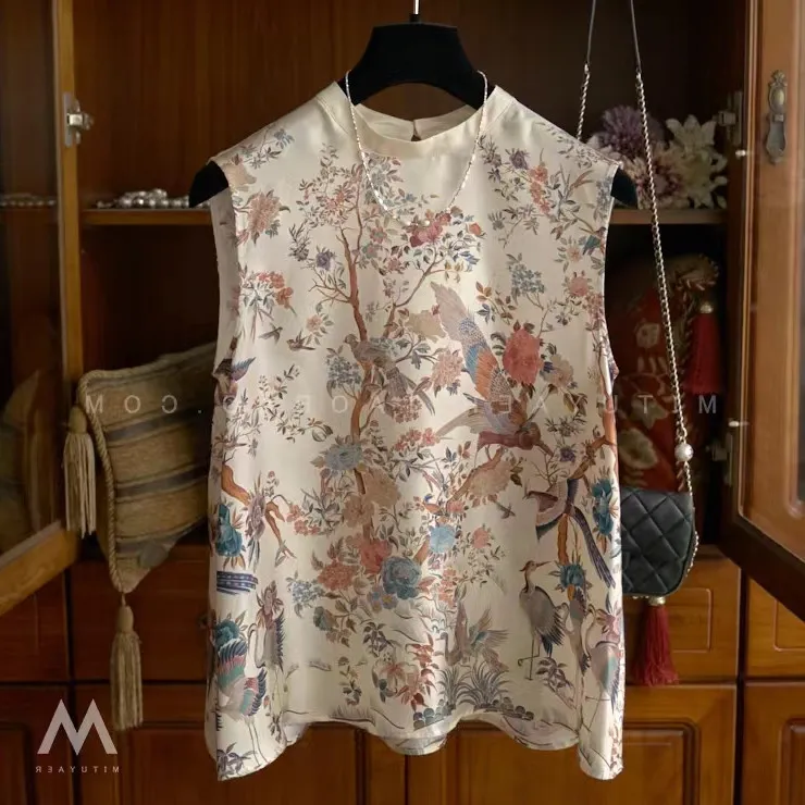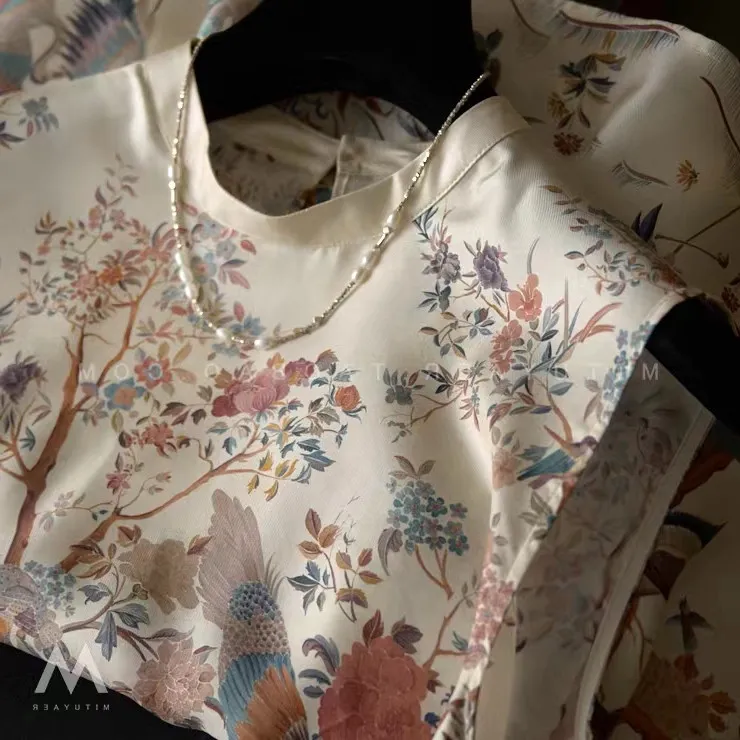 衣都精品- 2023新款中式寫意花鳥小立領輕盈上衣