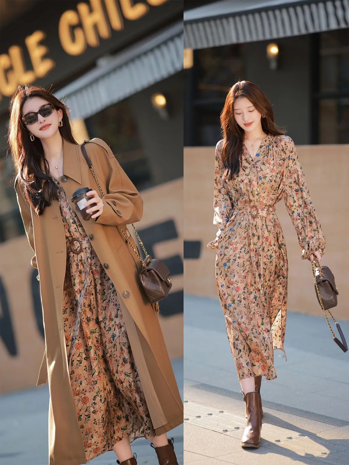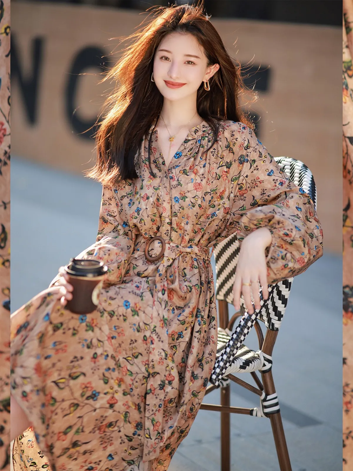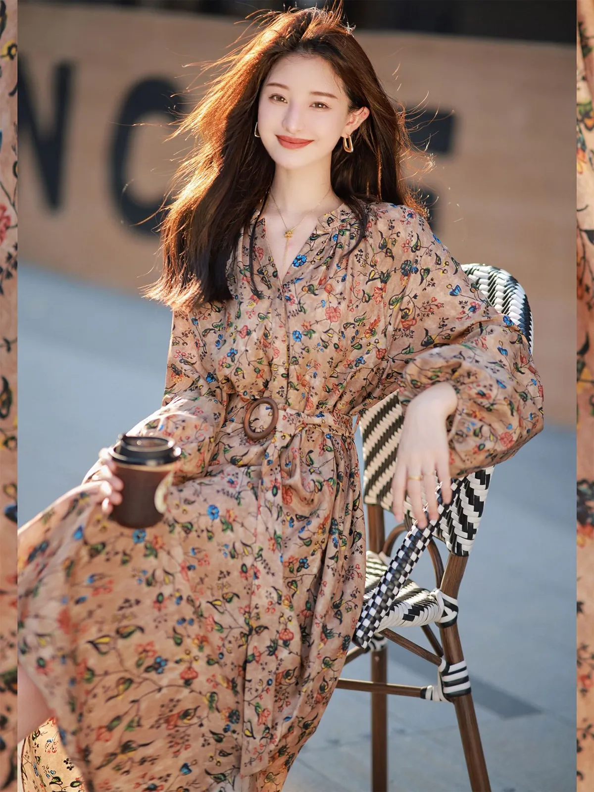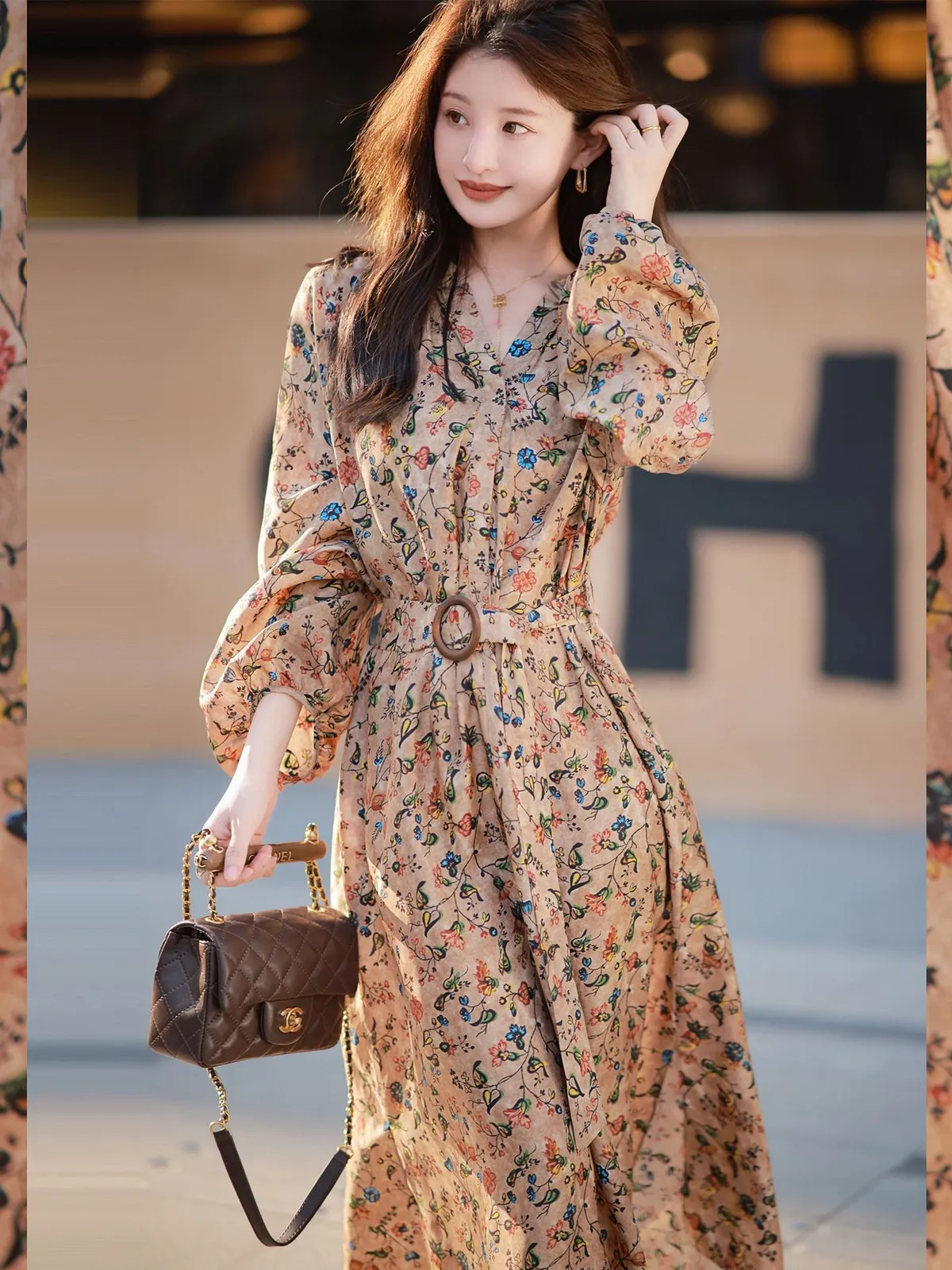 衣都精品- 2023新款法式溫柔風碎花優雅氣質V領連衣裙