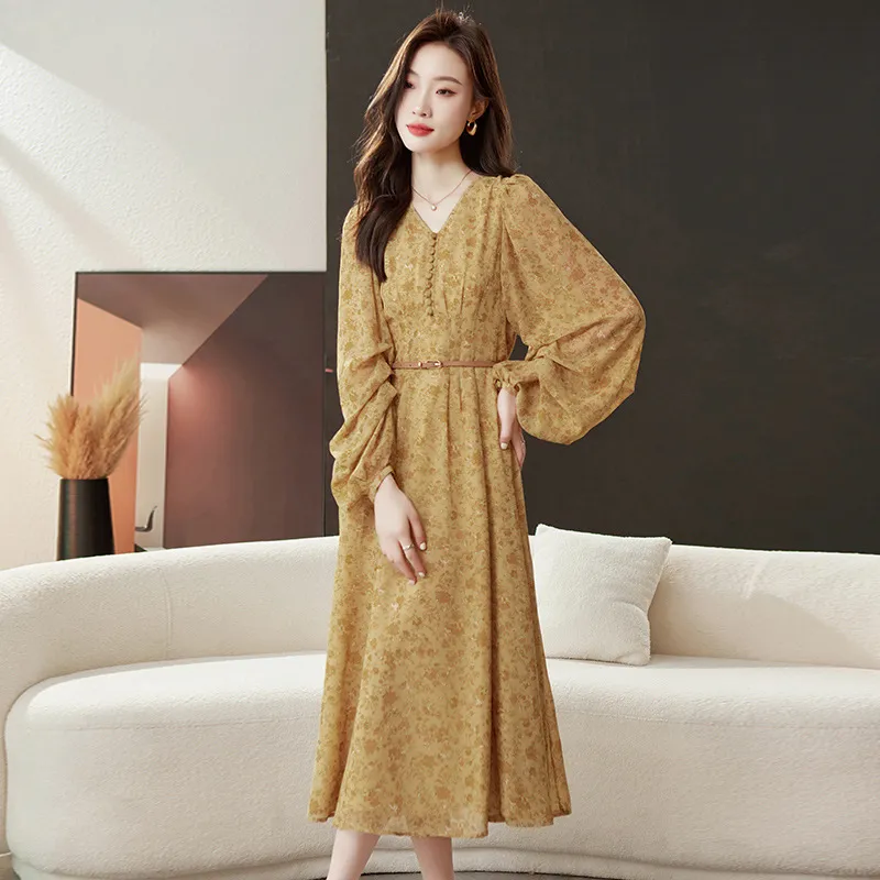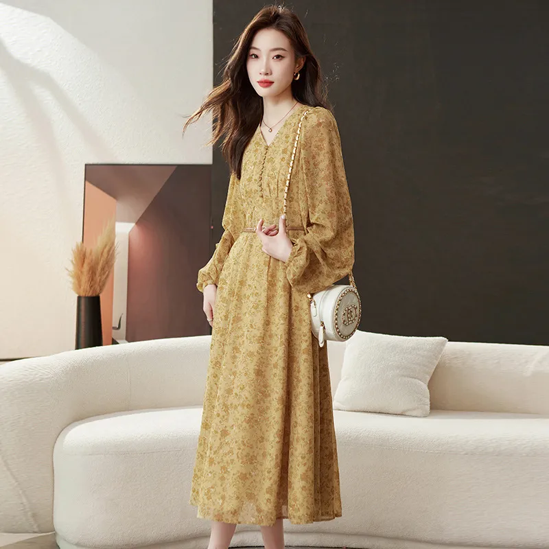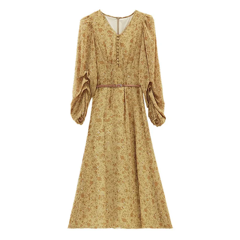 衣都精品- 2023新款法式溫柔風碎花優雅氣質V領連衣裙