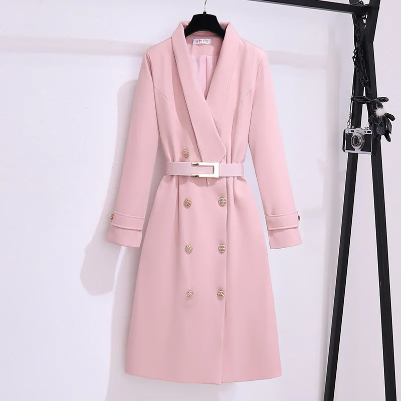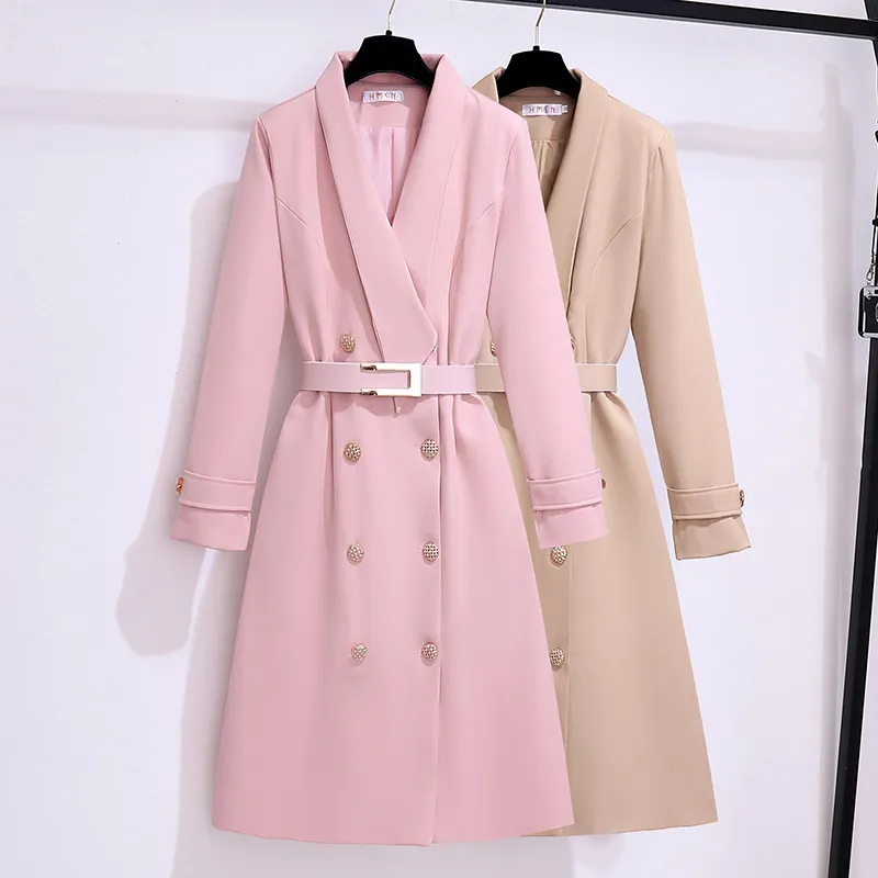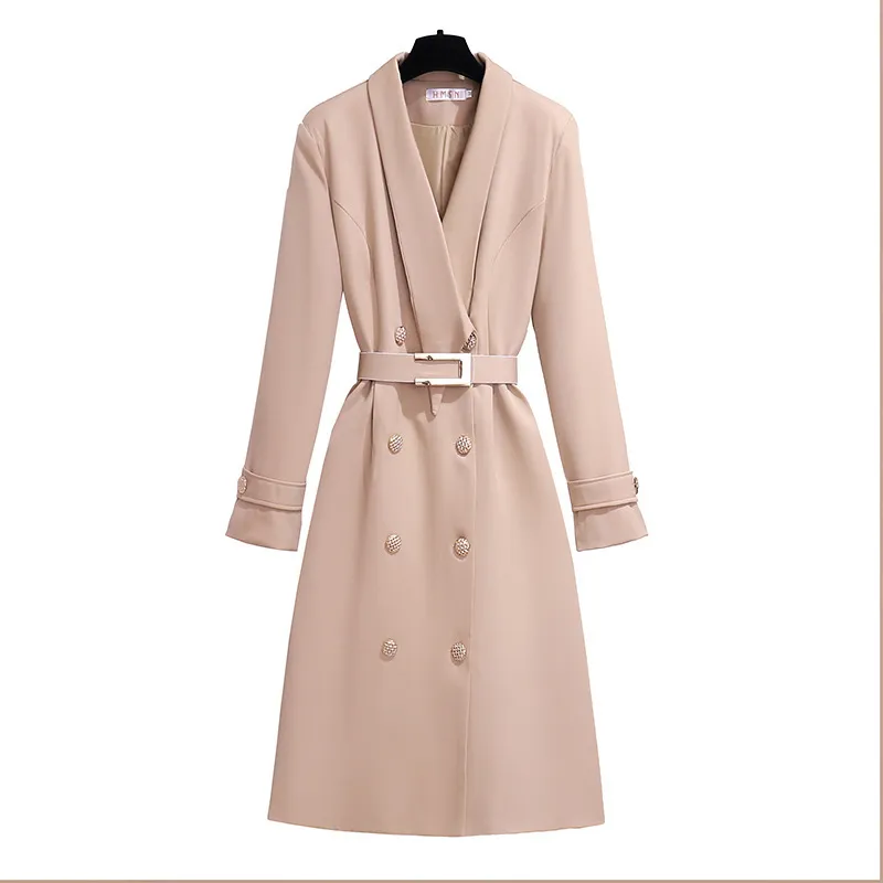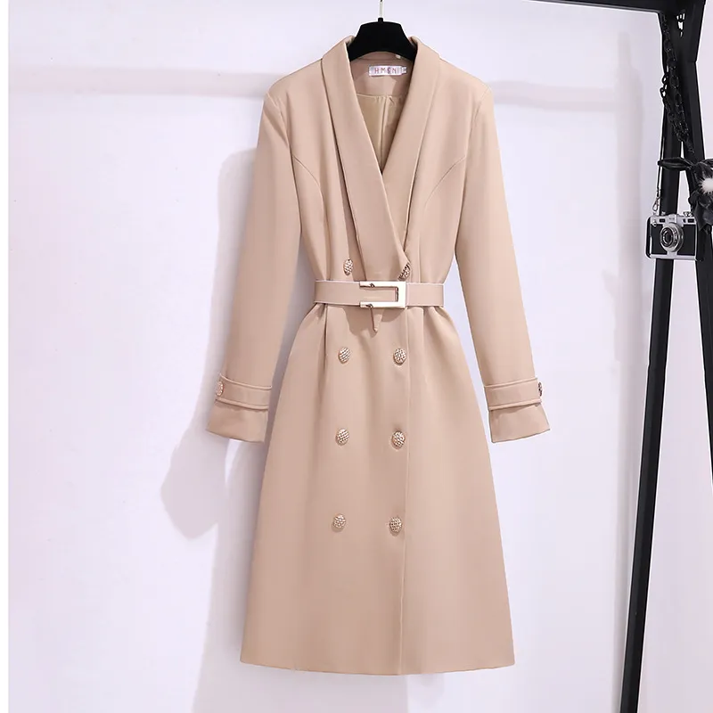 衣都精品- 2023新款韓版時尚鈕扣腰帶長款風衣外套