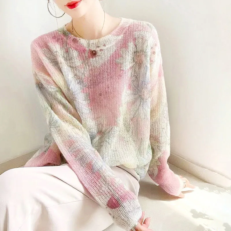 衣都精品- 2023新款慵懶風印花休閒百搭圓領長袖套頭上衣