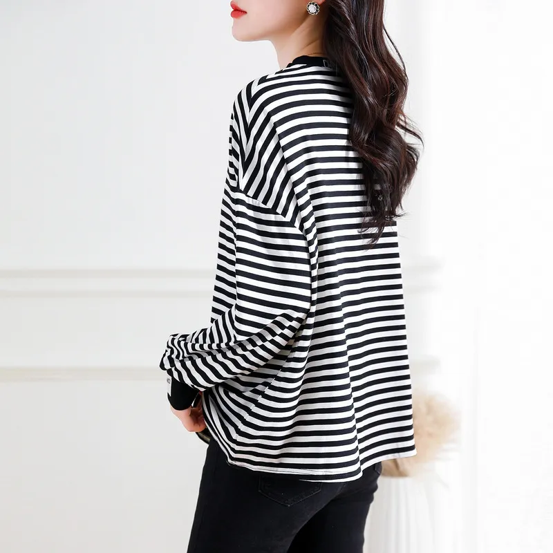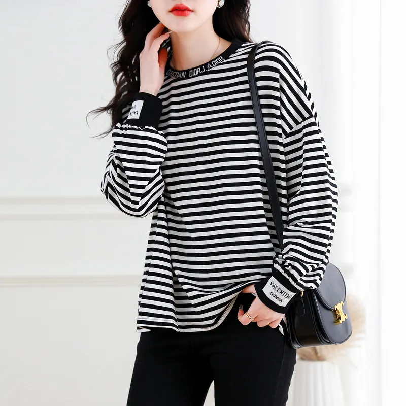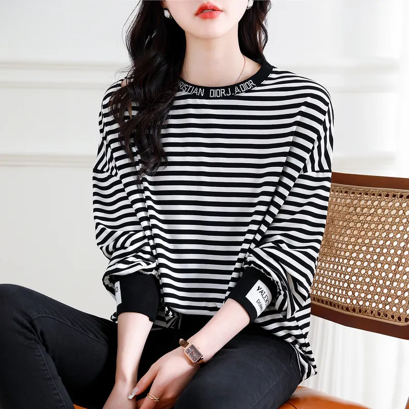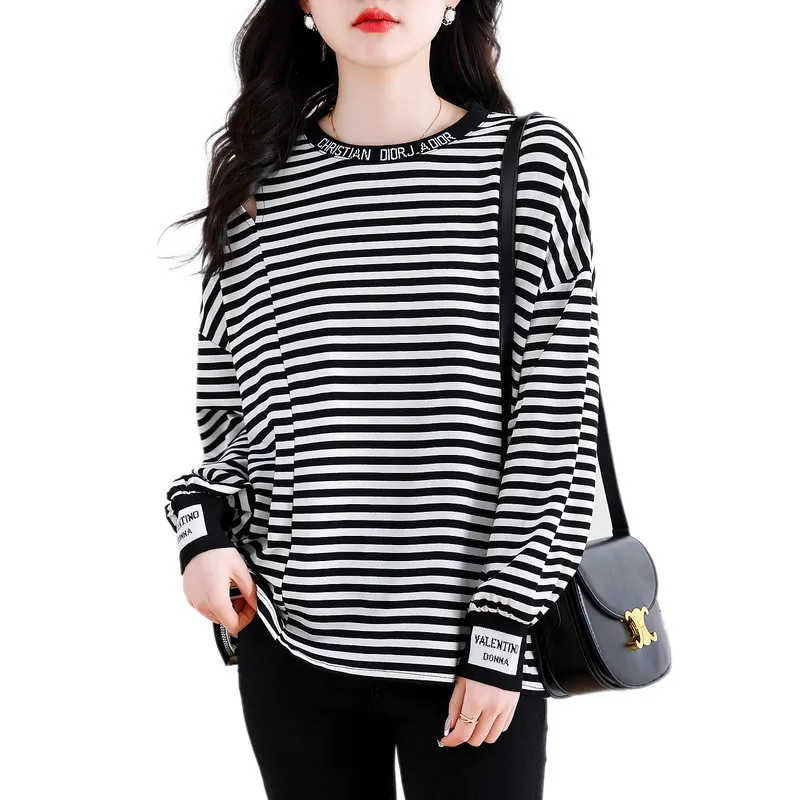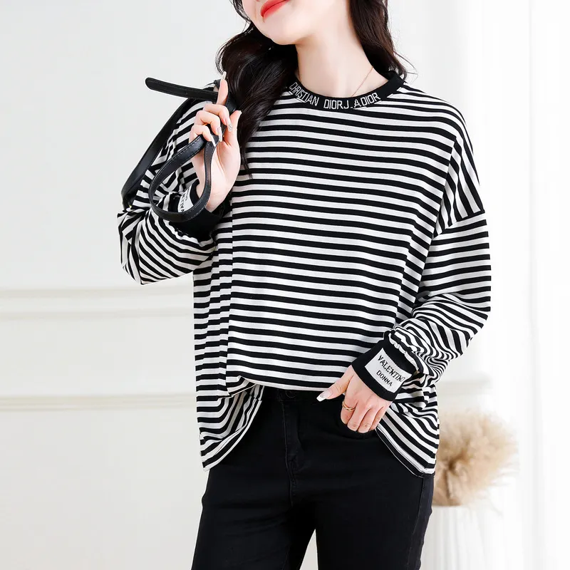 衣都精品- 2023新款時尚休閒條紋大碼簡約上衣