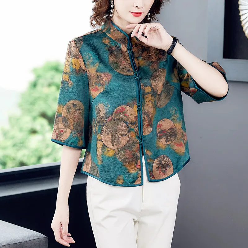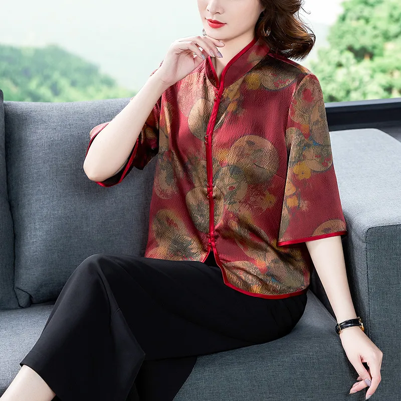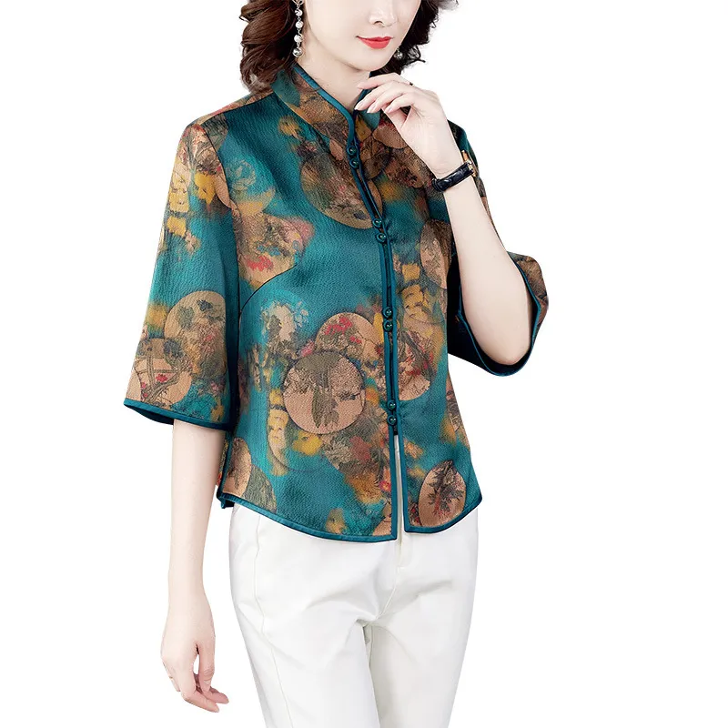 衣都精品- 2023新款氣質復古香雲紗真絲上衣
