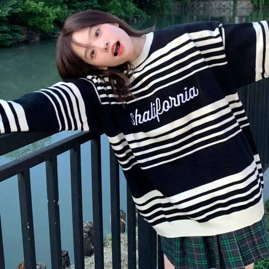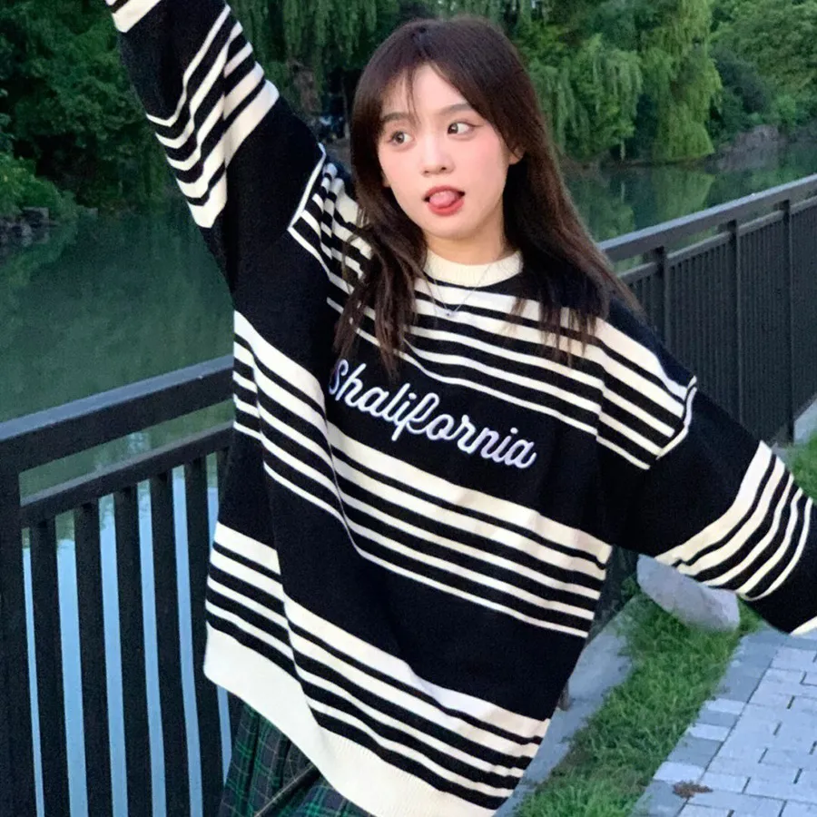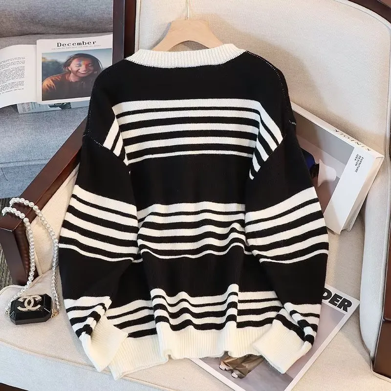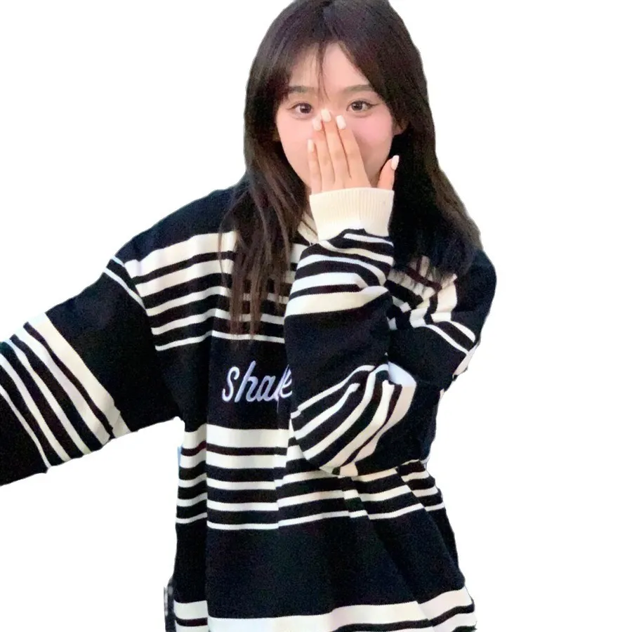衣都精品- 2023新款小眾寬鬆日系百搭條紋毛衣