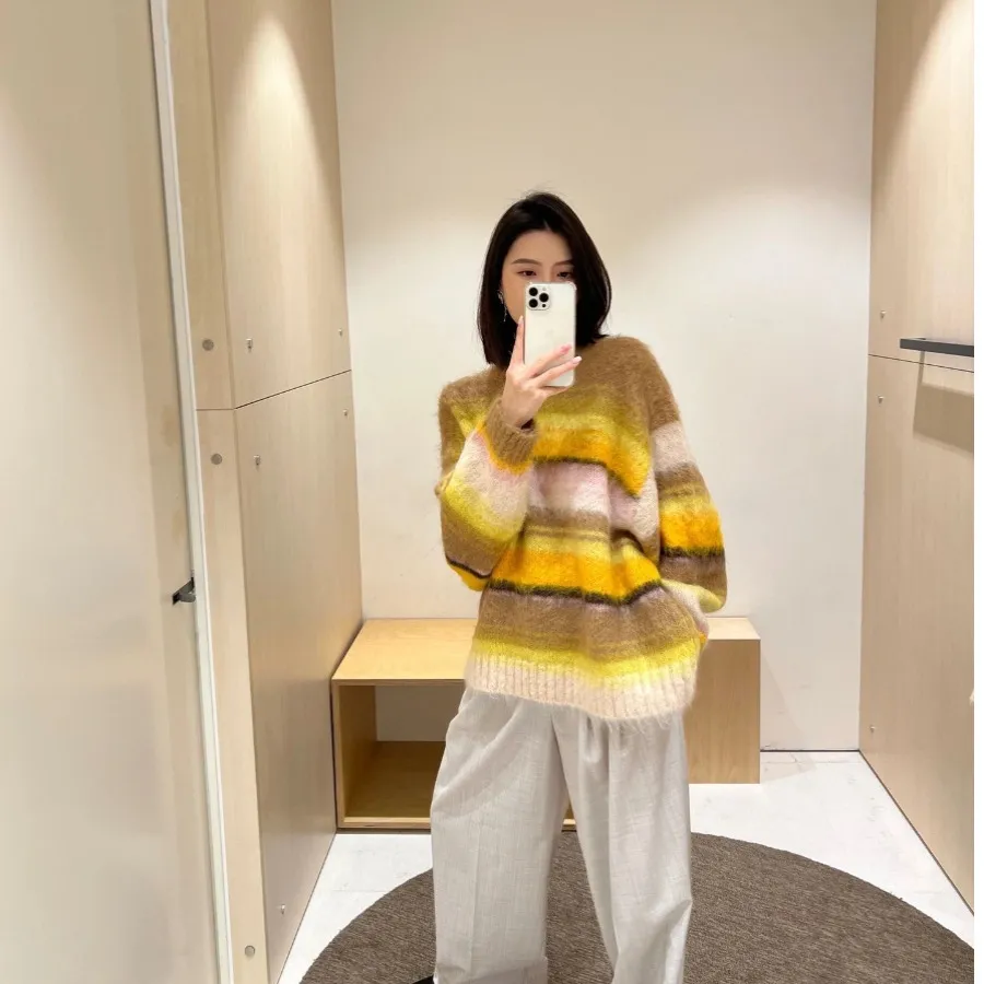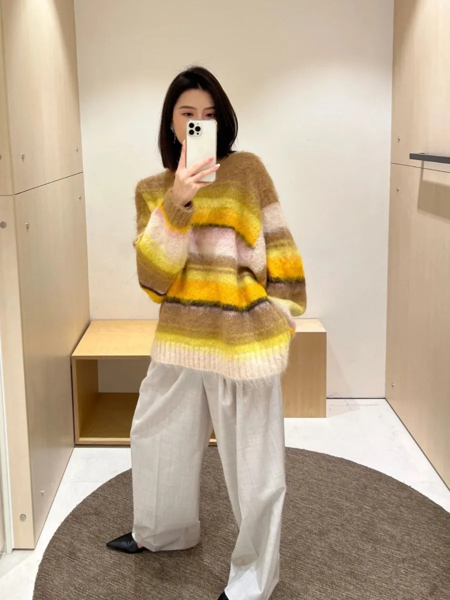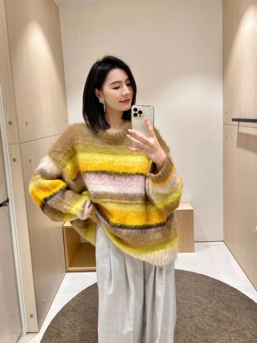 衣都精品- 2023新款小眾寬鬆日系百搭條紋毛衣