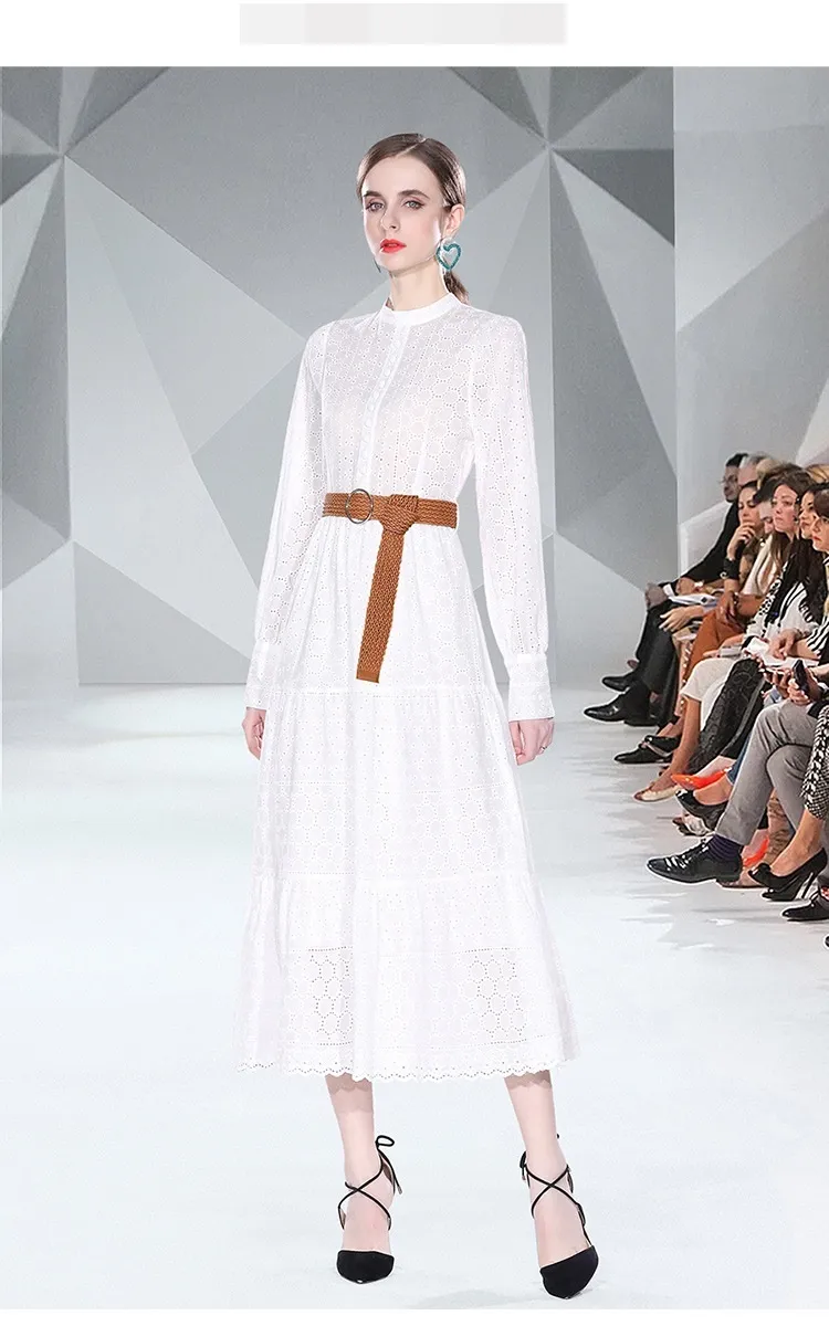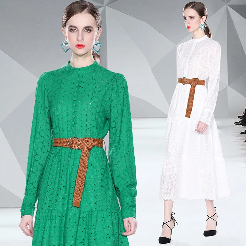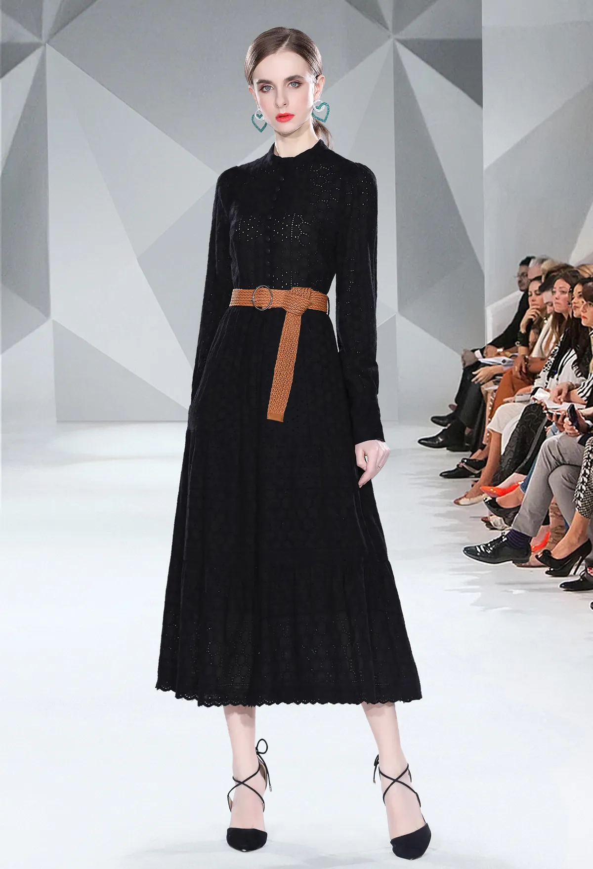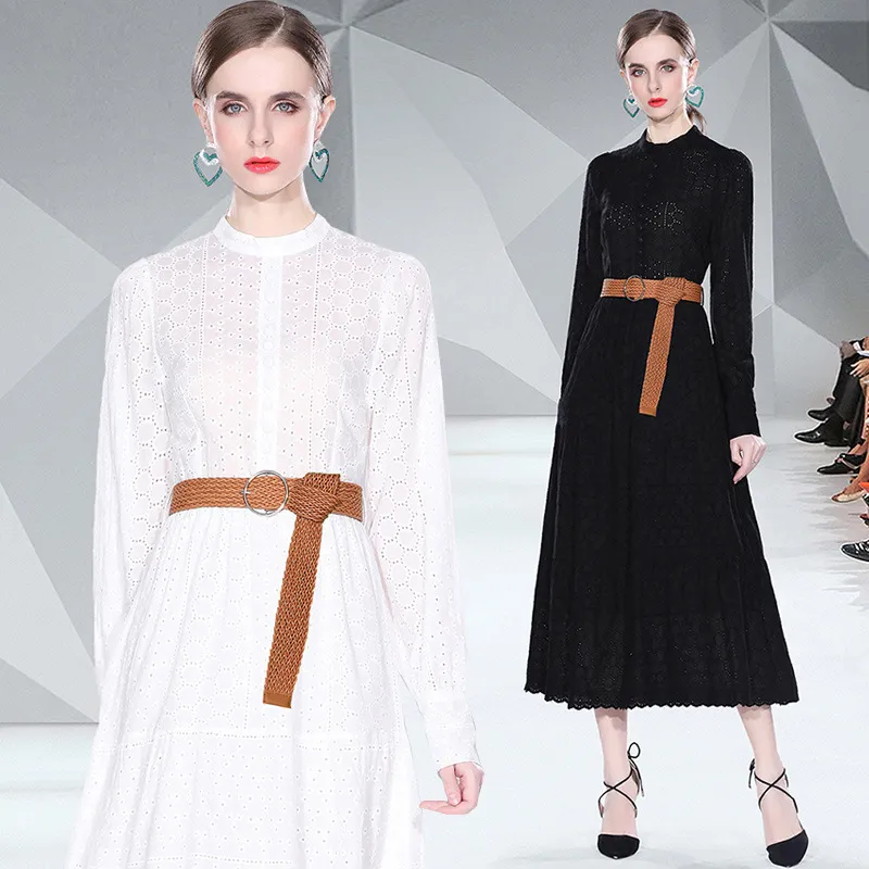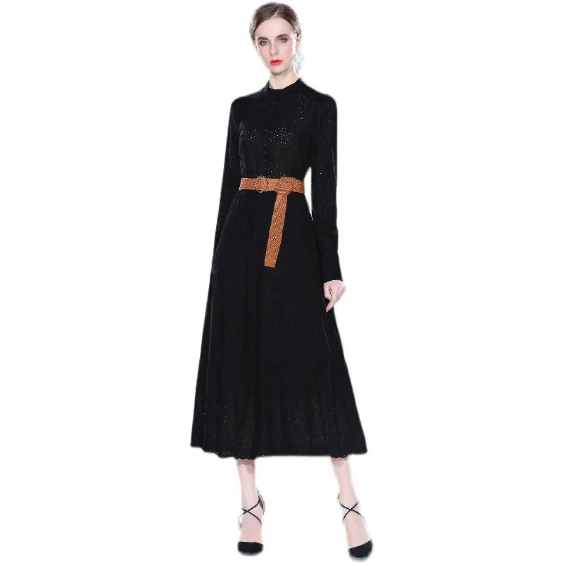 衣都精品- 2023新款時尚氣質長袖鏤空刺繡連衣裙