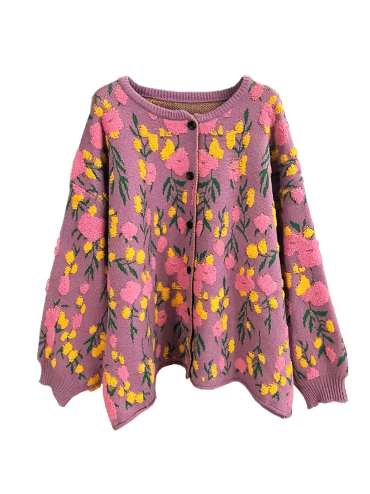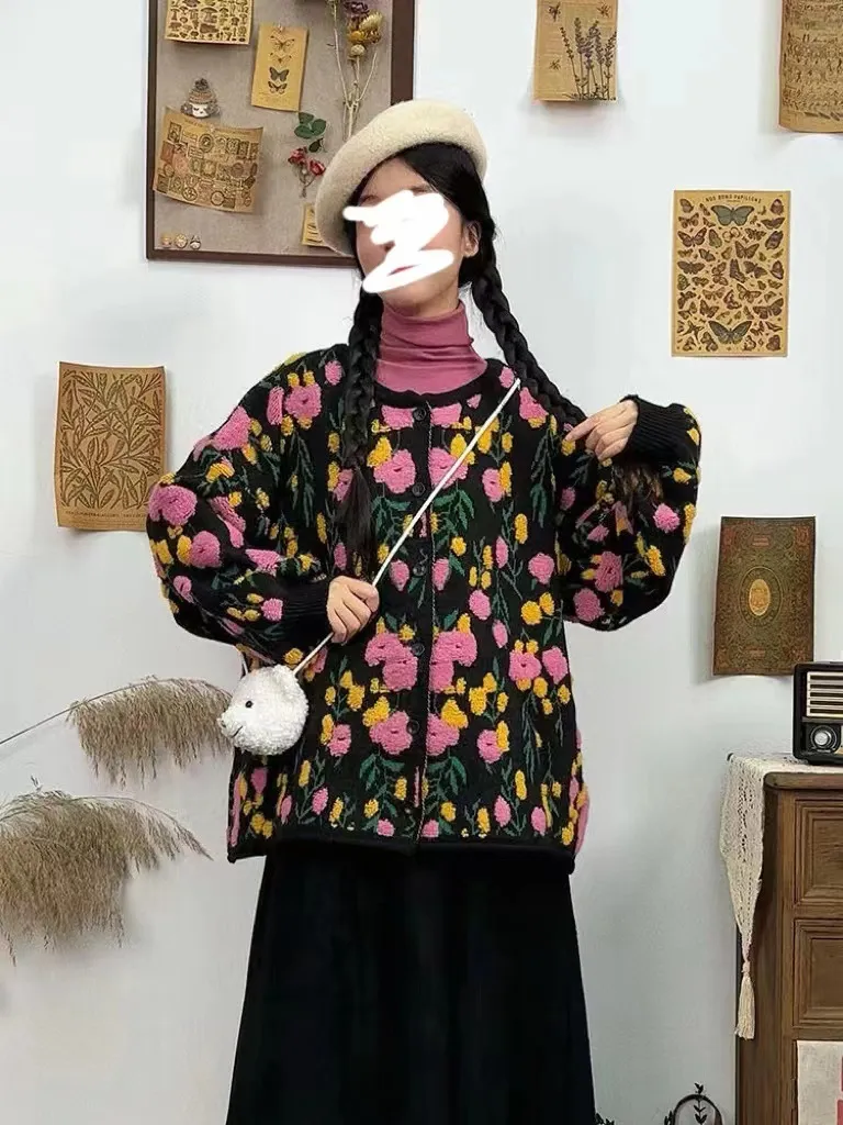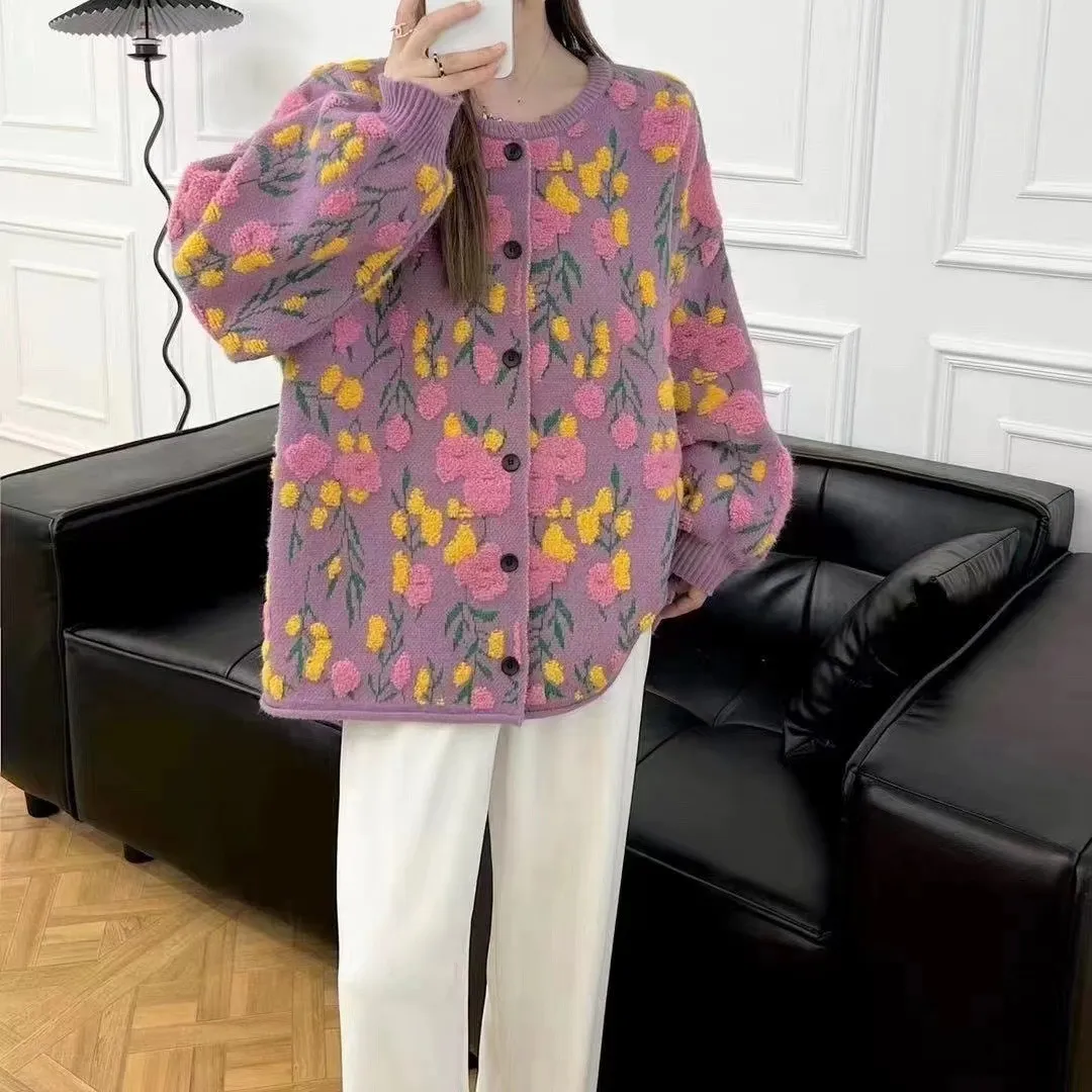 衣都精品- 2023新款超美立體花朵圓領針織外套